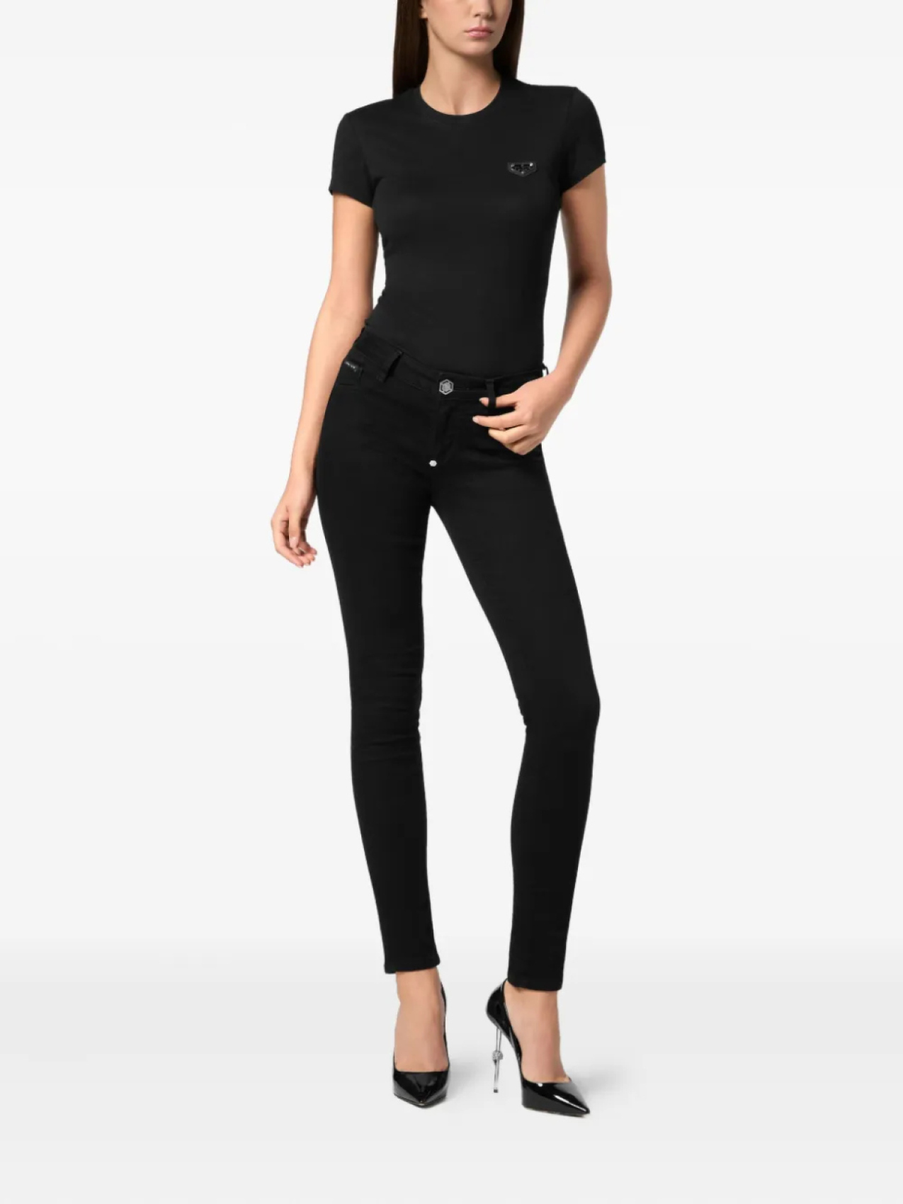 Джинсы-джеггинсы с нашивкой-логотипом Philipp Plein, черный 21 814₽