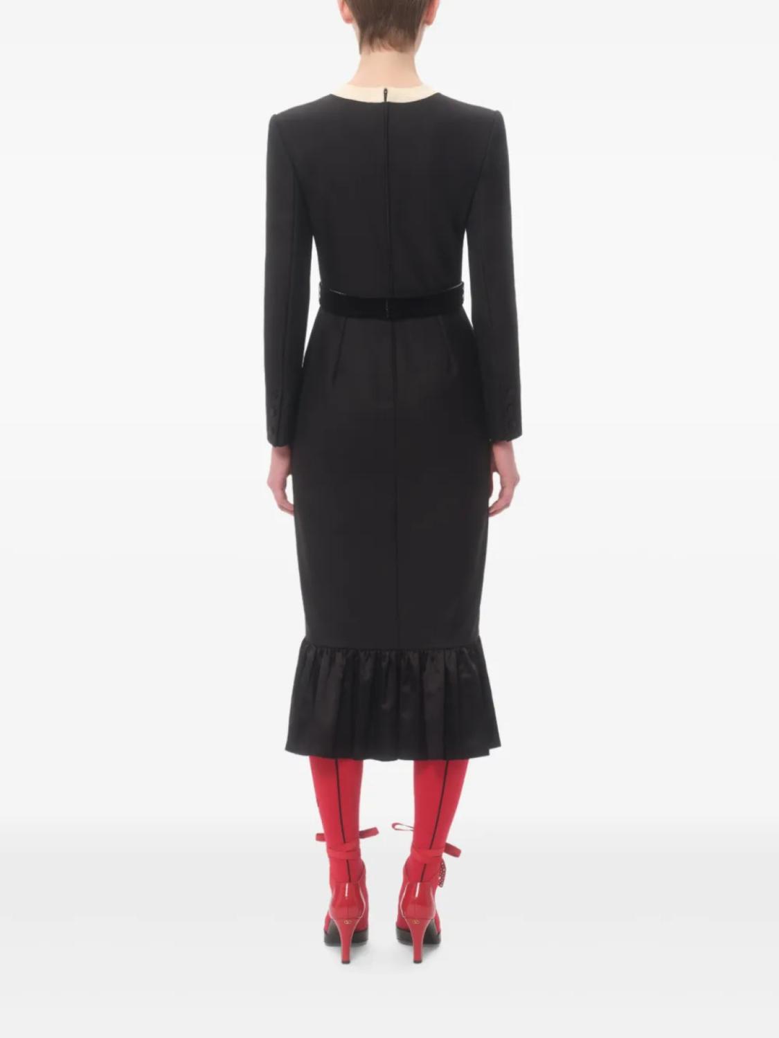 Готовое платье Valentino, потайная застежка-молния сзади, пояс на талии, баска. Полный образ включает аксессуары Valentino Garavani.