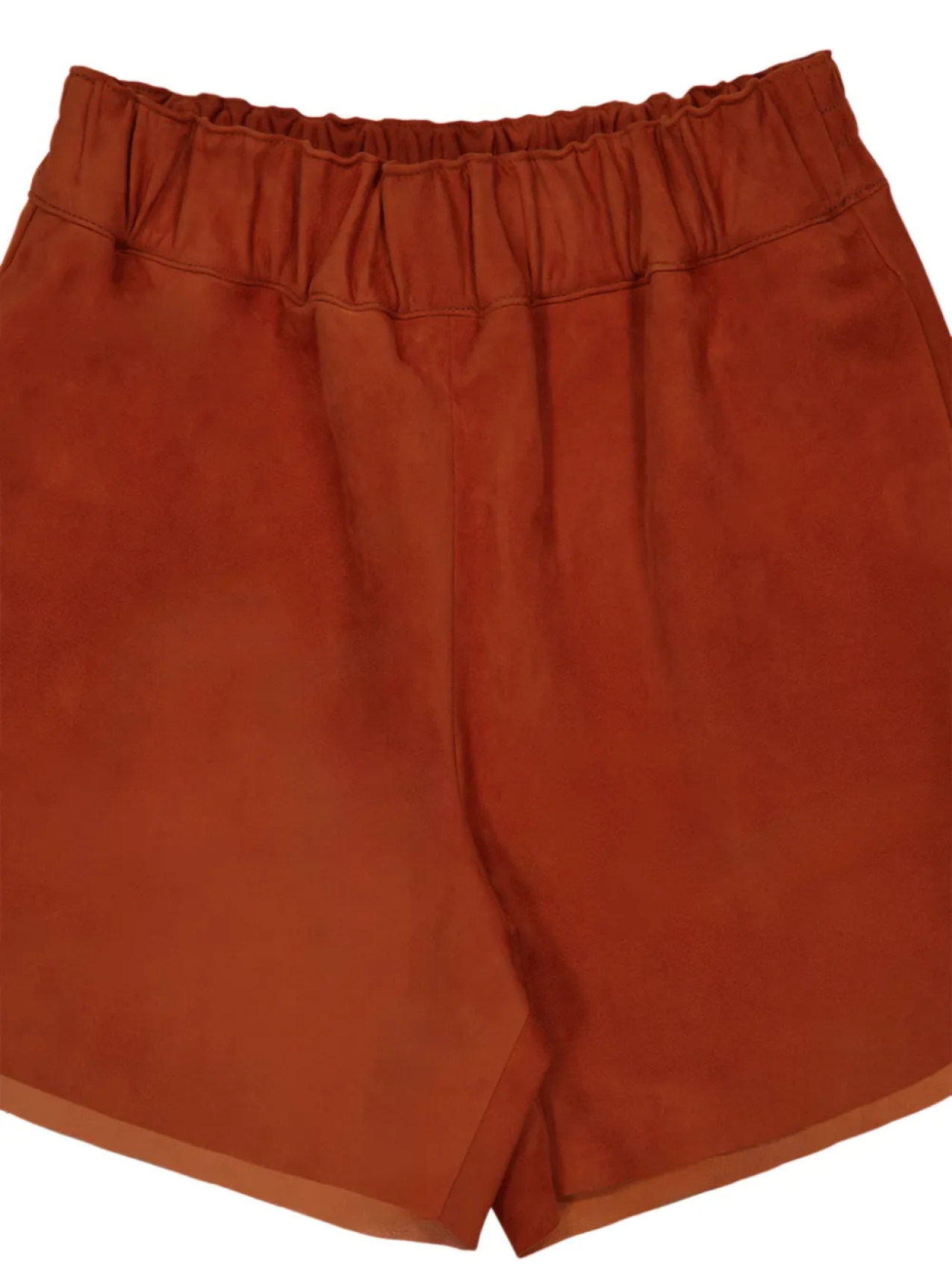 Эластичный пояс кирпично-красного цвета, пояс в стиле «бумажный пакет», два прорезных кармана по бокам
