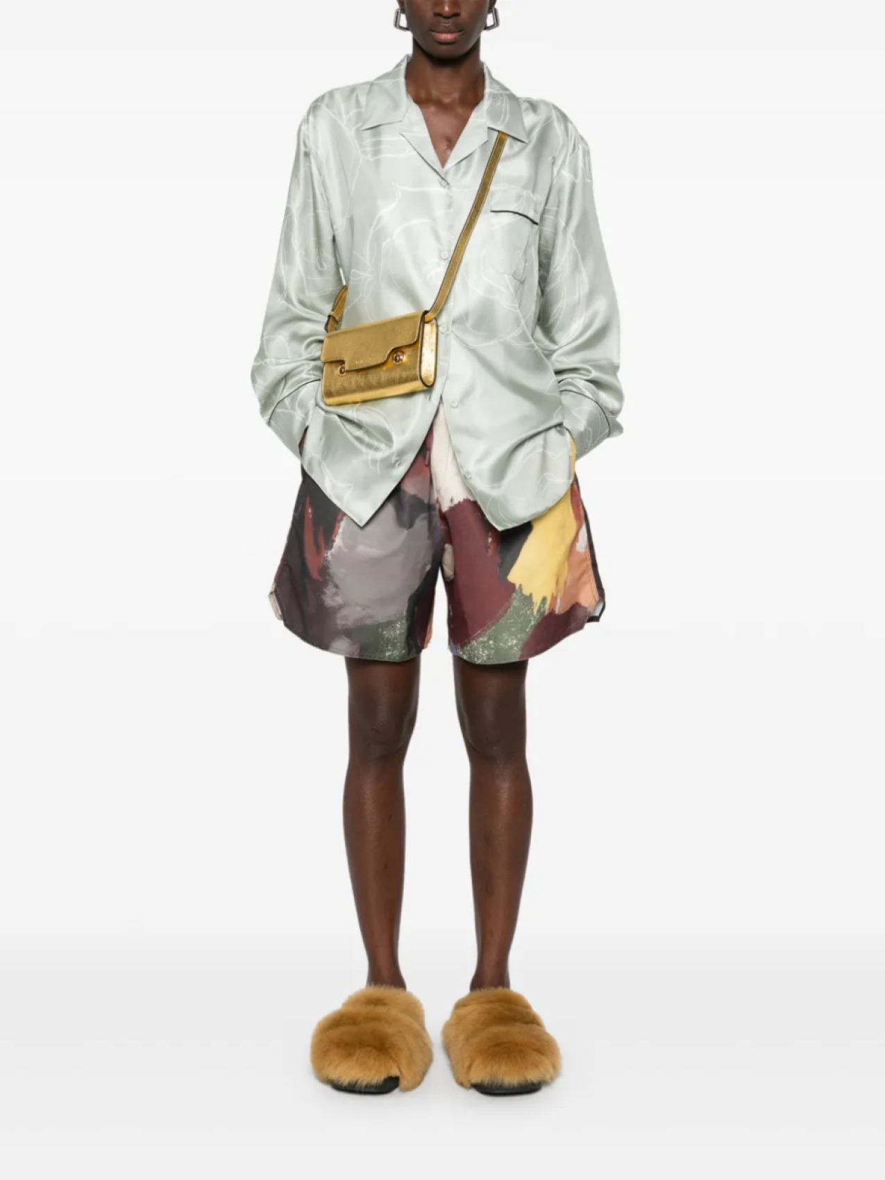 Шелковая рубашка с принтом Marni, зеленый 47 945₽