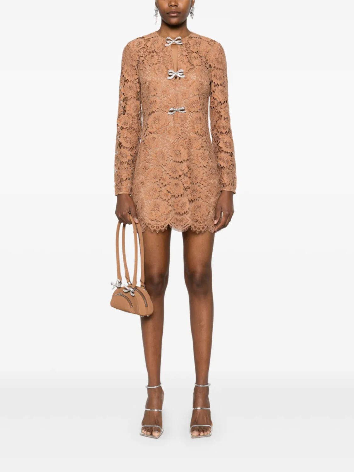 Мини-платье с кружевным бантом Self-Portrait, коричневый