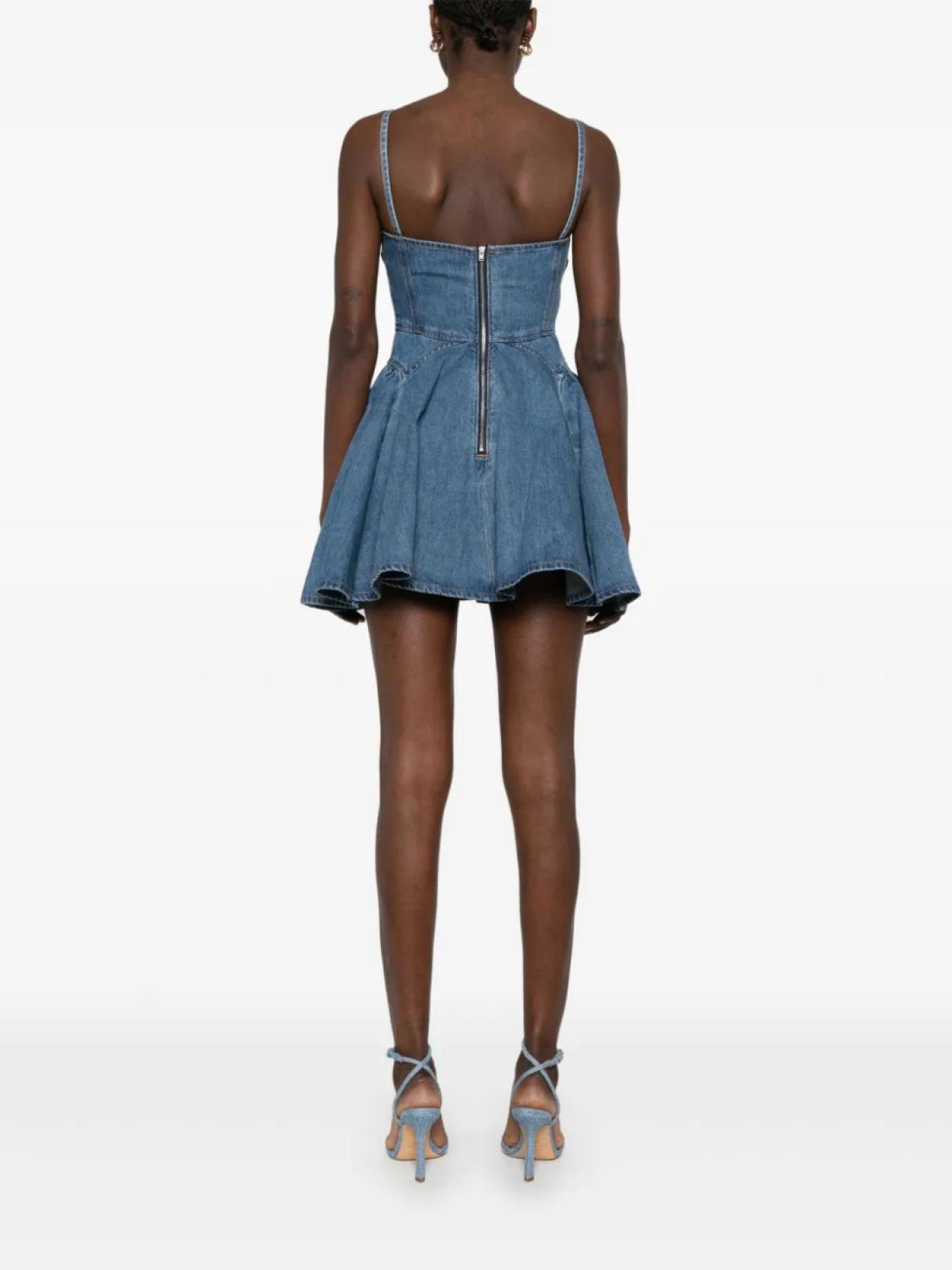 Расклешенное мини-платье из денима Self-Portrait, синий 40 401₽