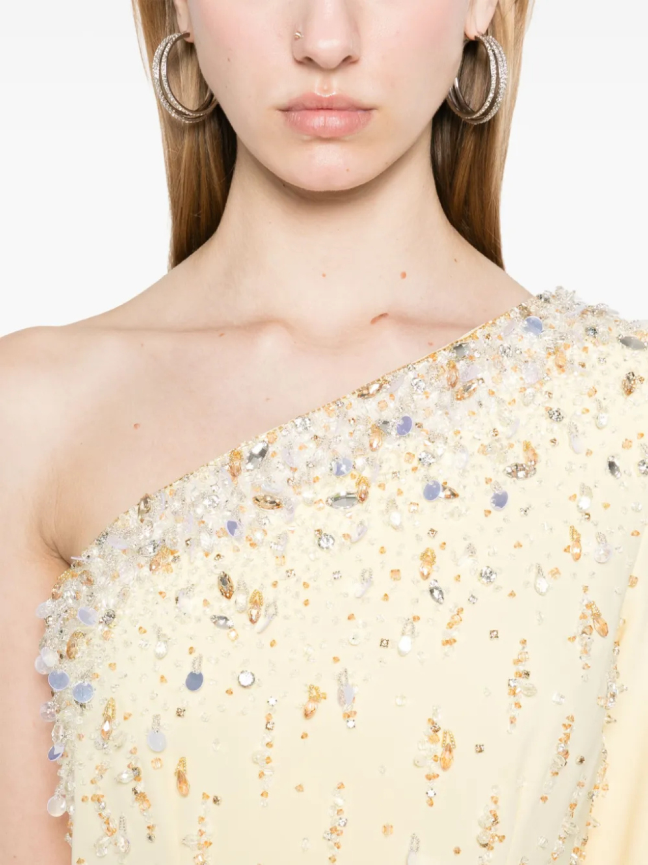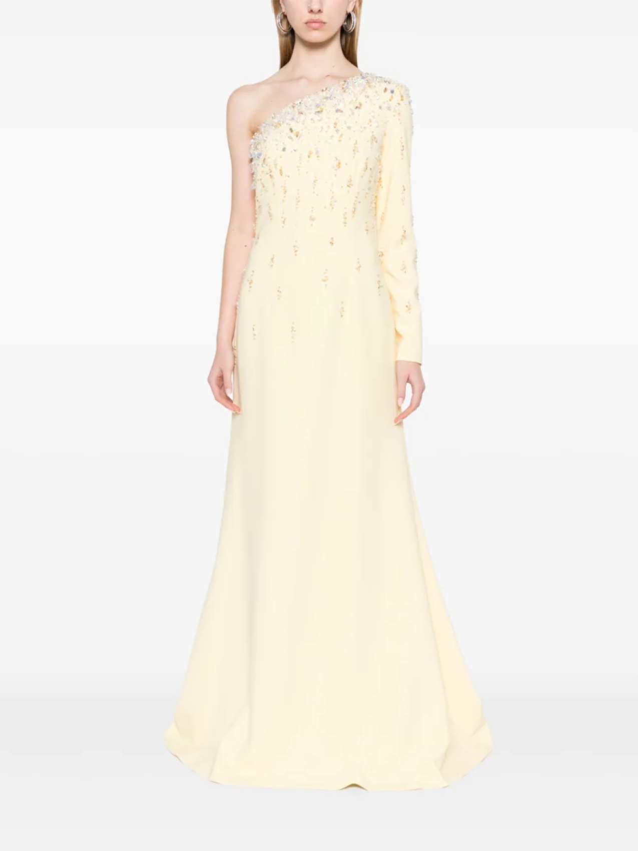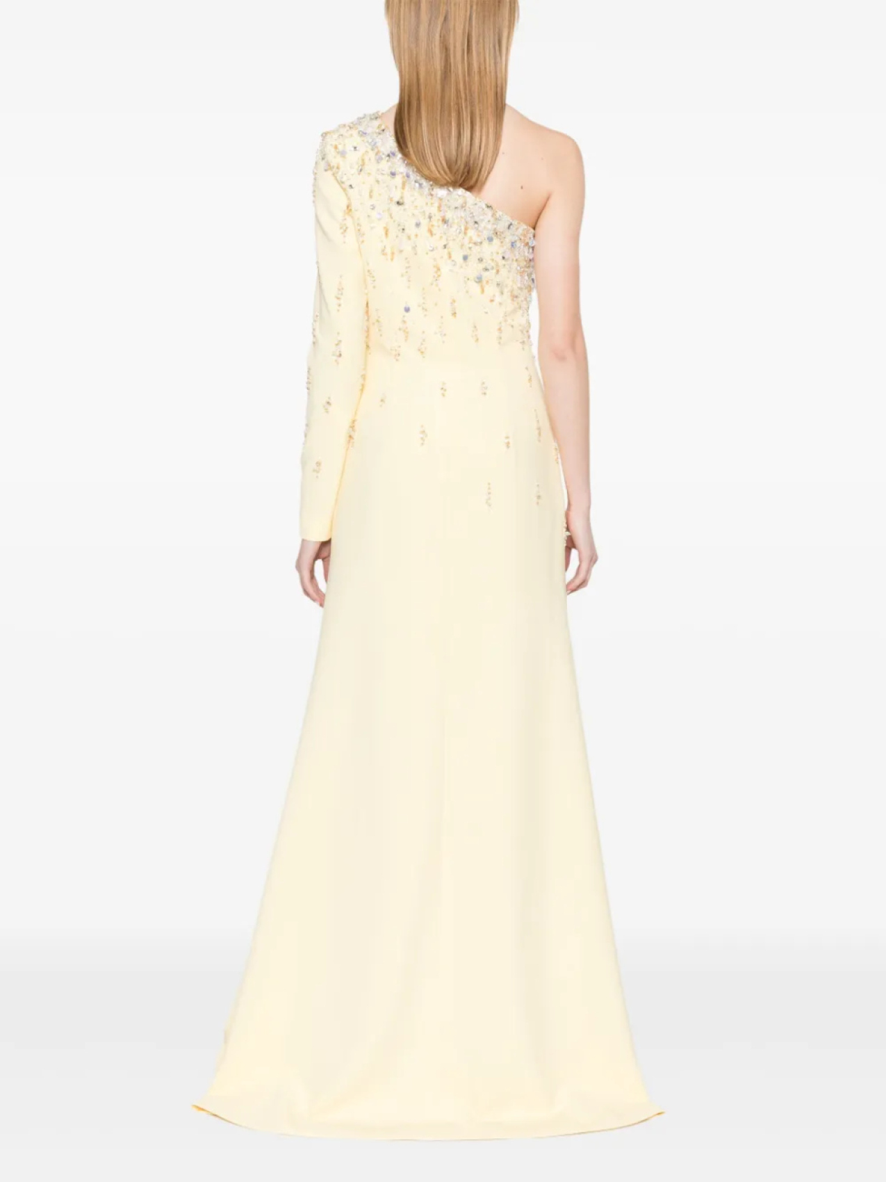 Длинное платье на одно плечо от Dina Melwani, желтый 370 480₽