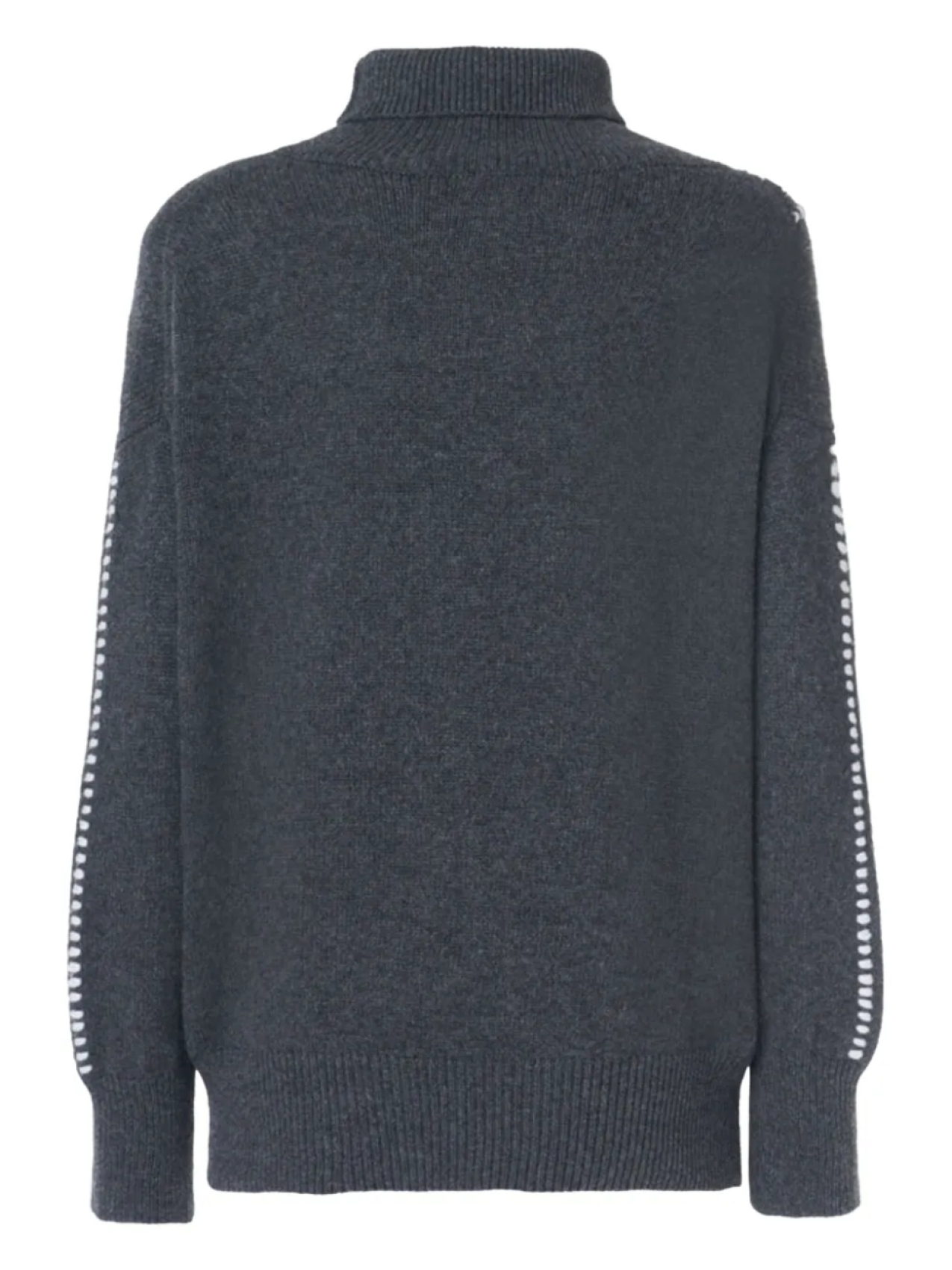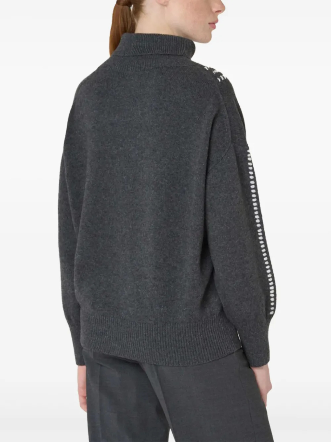 Серый вышитый воротник с имитацией горловины, длинные рукава, ребристые манжеты и подол