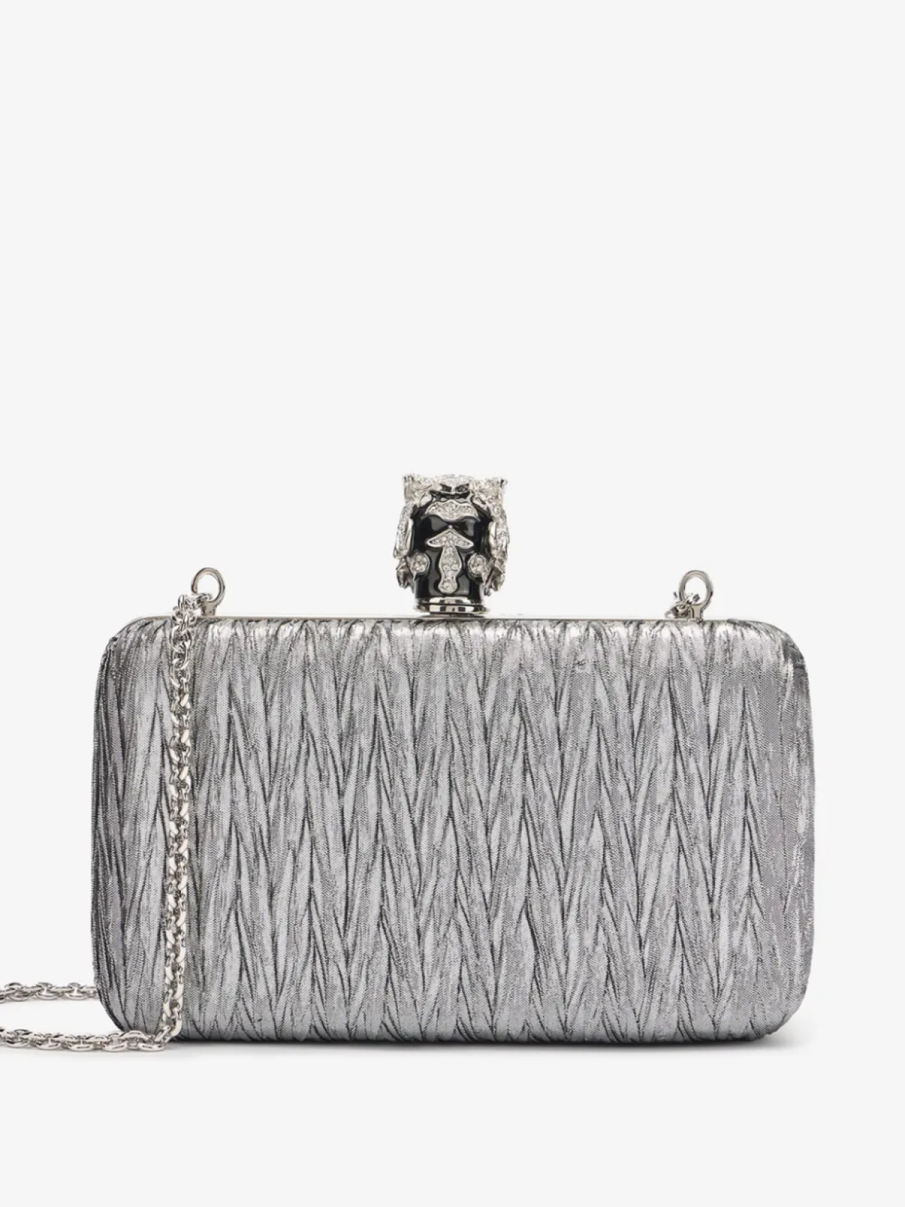 Застежка серебристого тона, фирменный мотив «Голова тигра», цепочный плечевой ремень, основное отделение