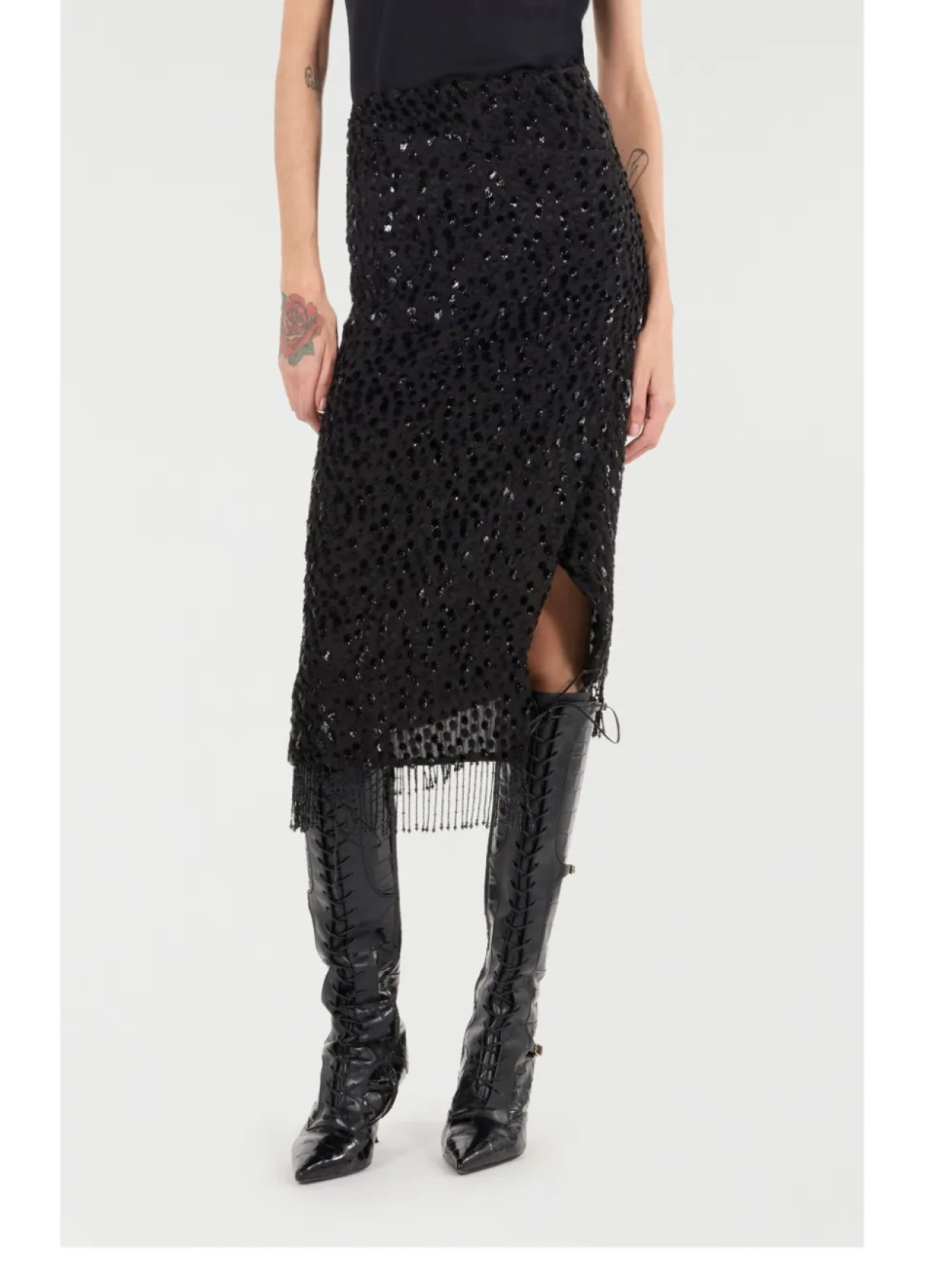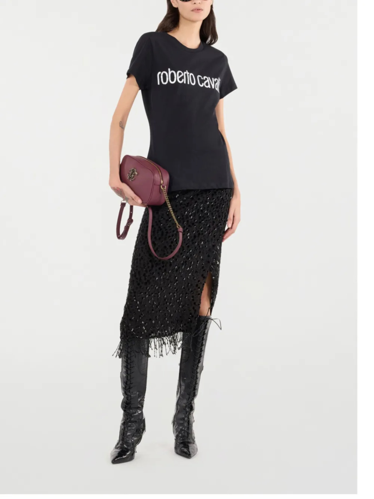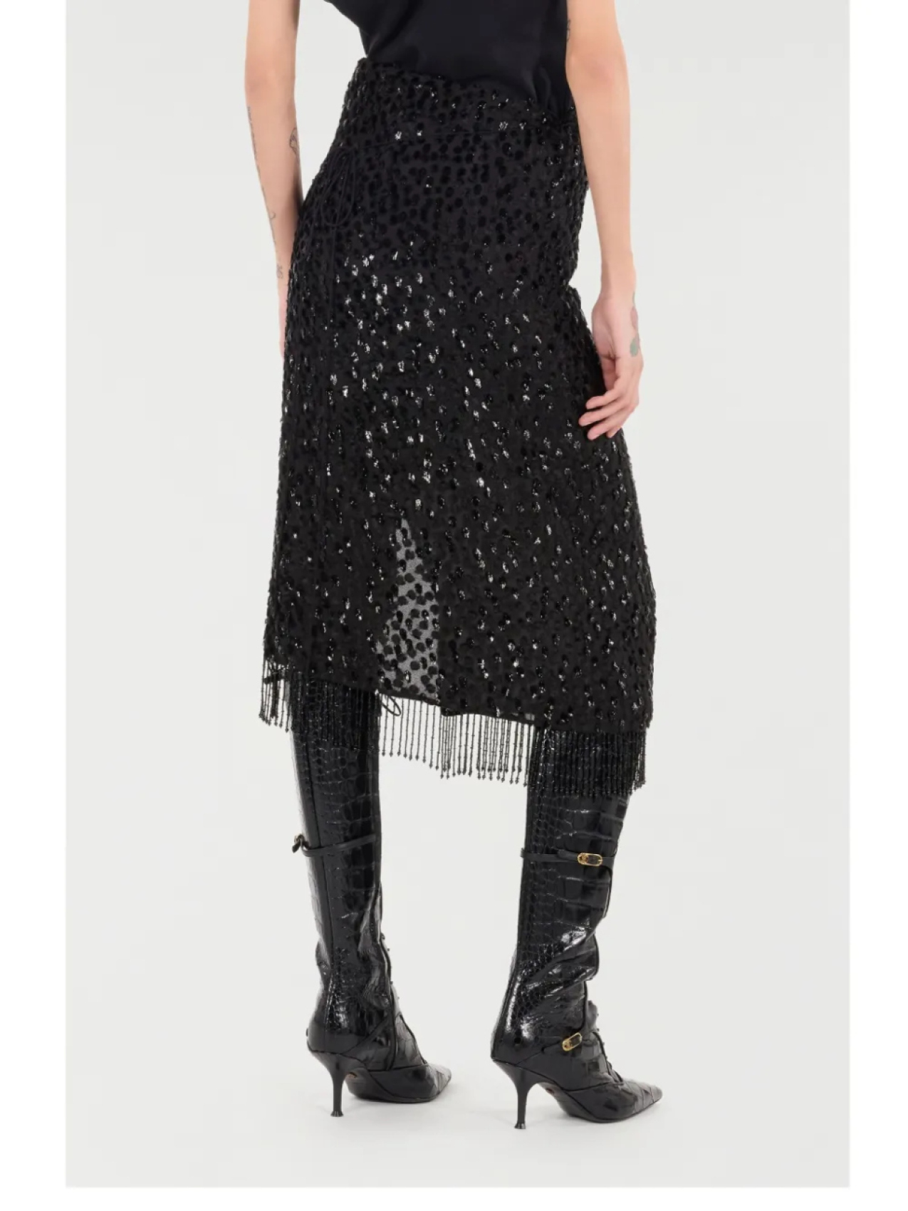 Юбка с бахромой и пайетками от Roberto Cavalli, черный 59 798₽