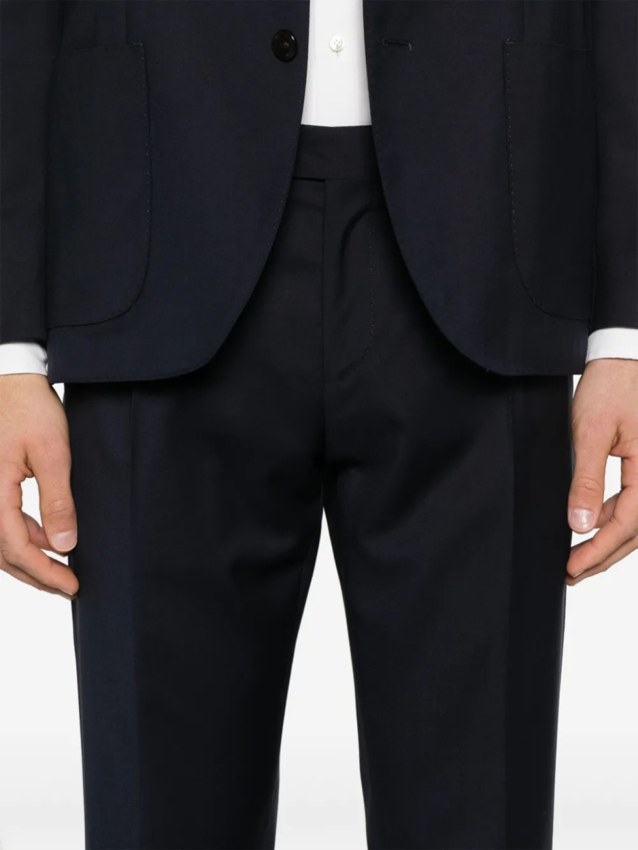 Берлинская лазурь, застежка на пуговицы спереди, потайная ширинка и застежка на пуговицы, внутренний карман, английские шлицы сзади