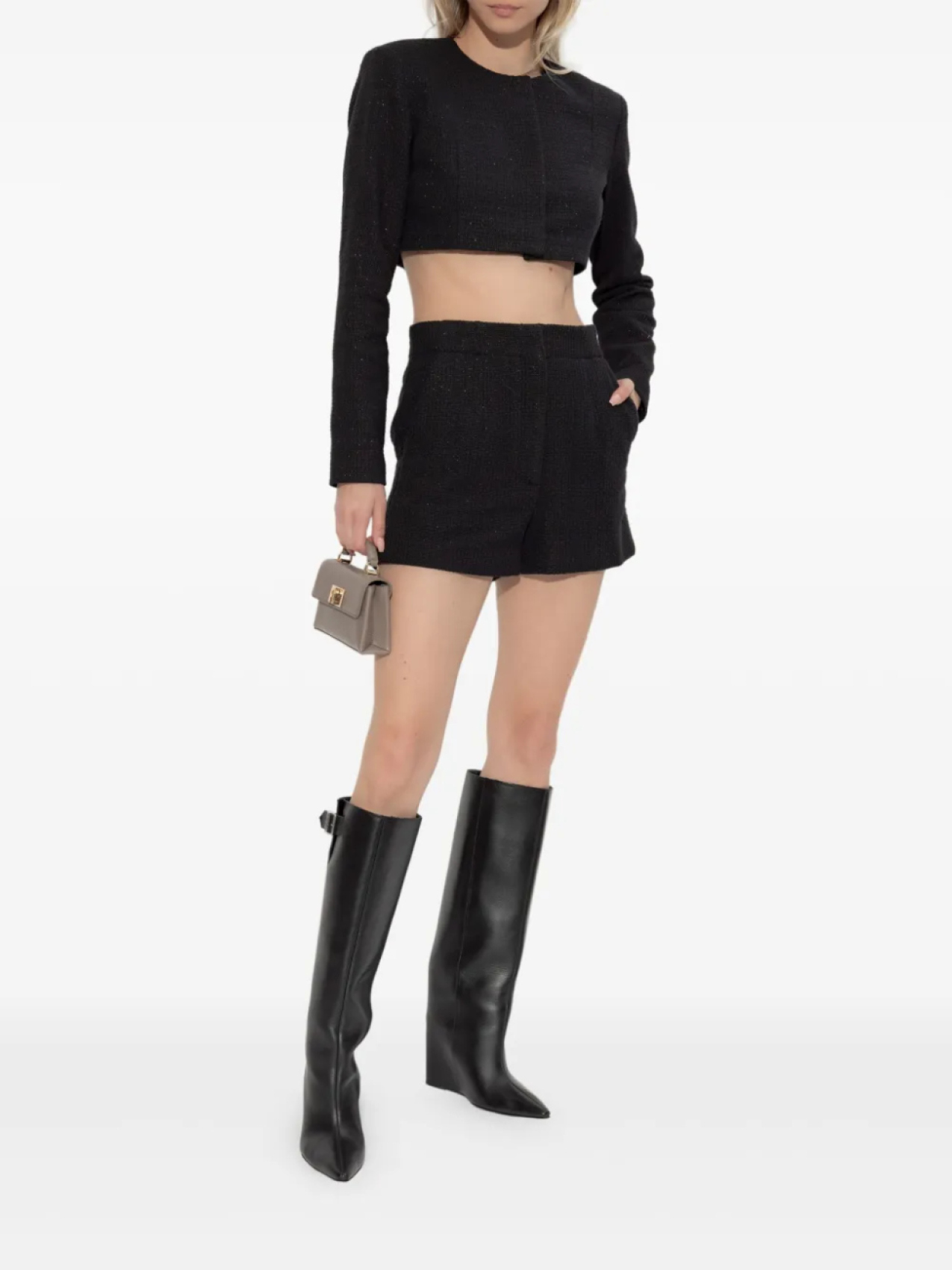 Черная потайная застежка спереди, круглый вырез, длинные рукава