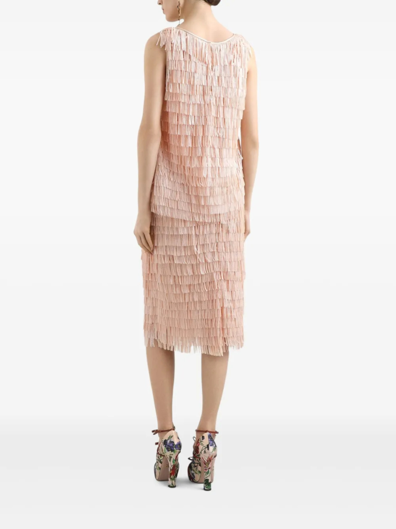 Пудрово-розовая потайная застежка-молния сзади, отделка бахромой, высокая талия