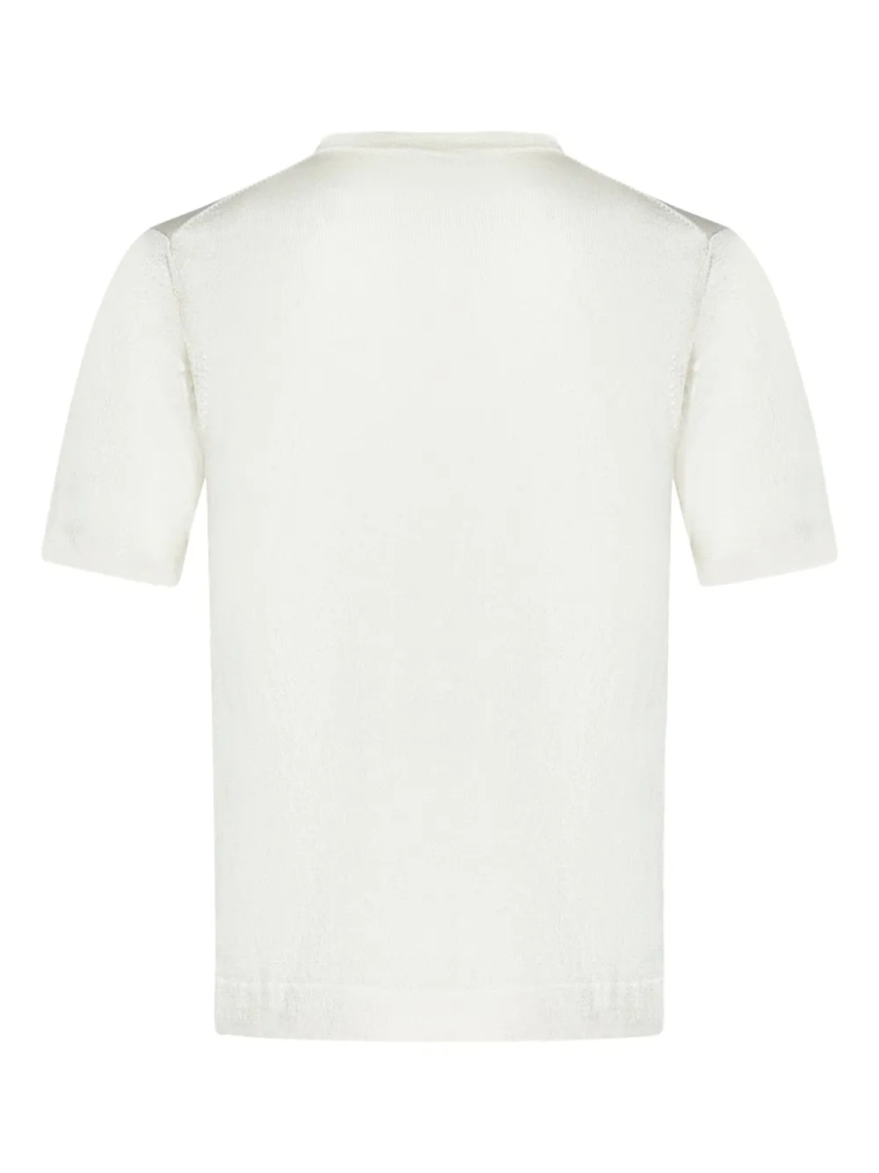 Белый тонкий трикотаж с круглым вырезом, короткими рукавами, прямым подолом