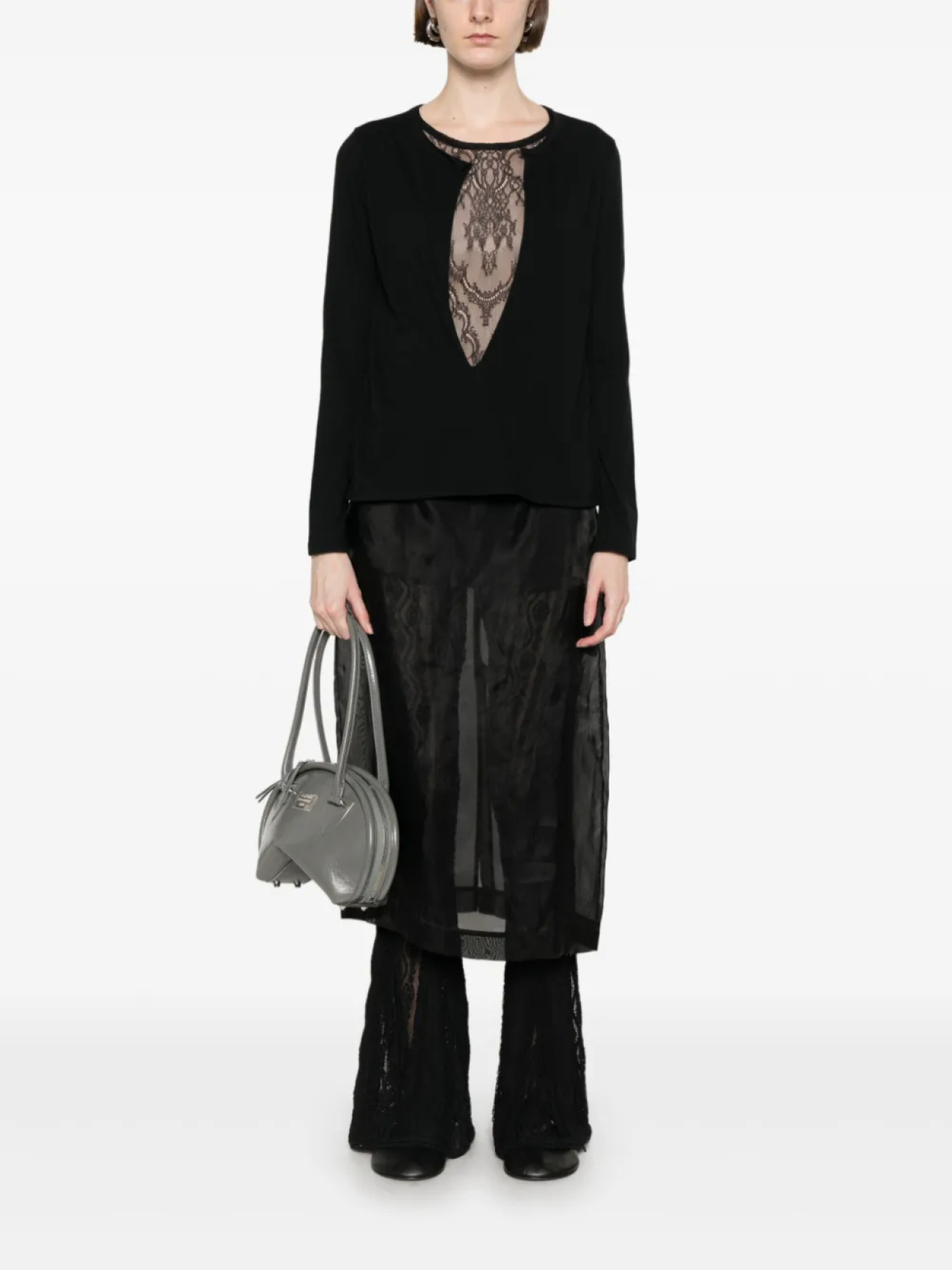 Футболка с кружевными деталями Yohji Yamamoto, черный 46 945₽
