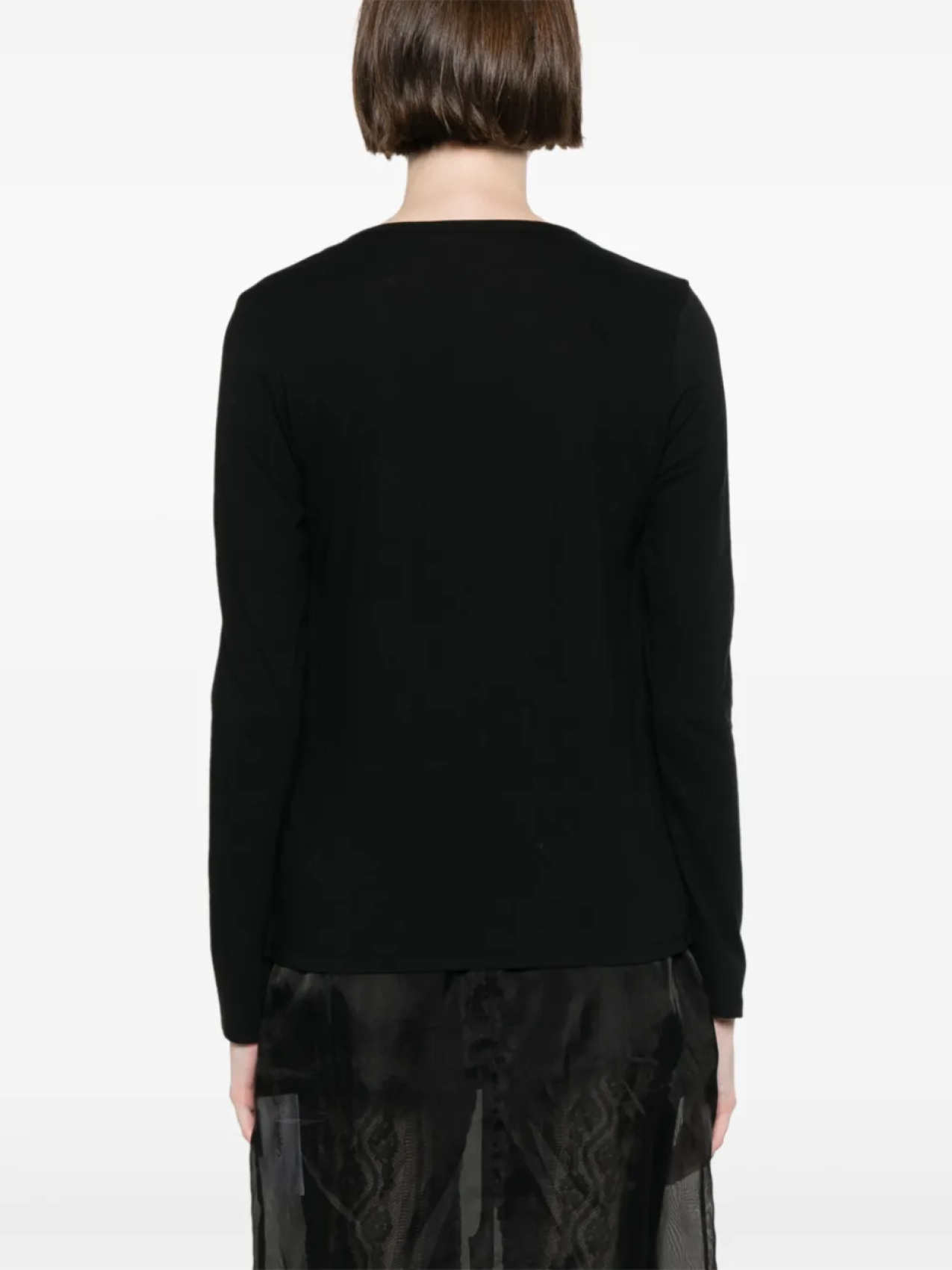 Черный круглый вырез, длинные рукава, прямой подол