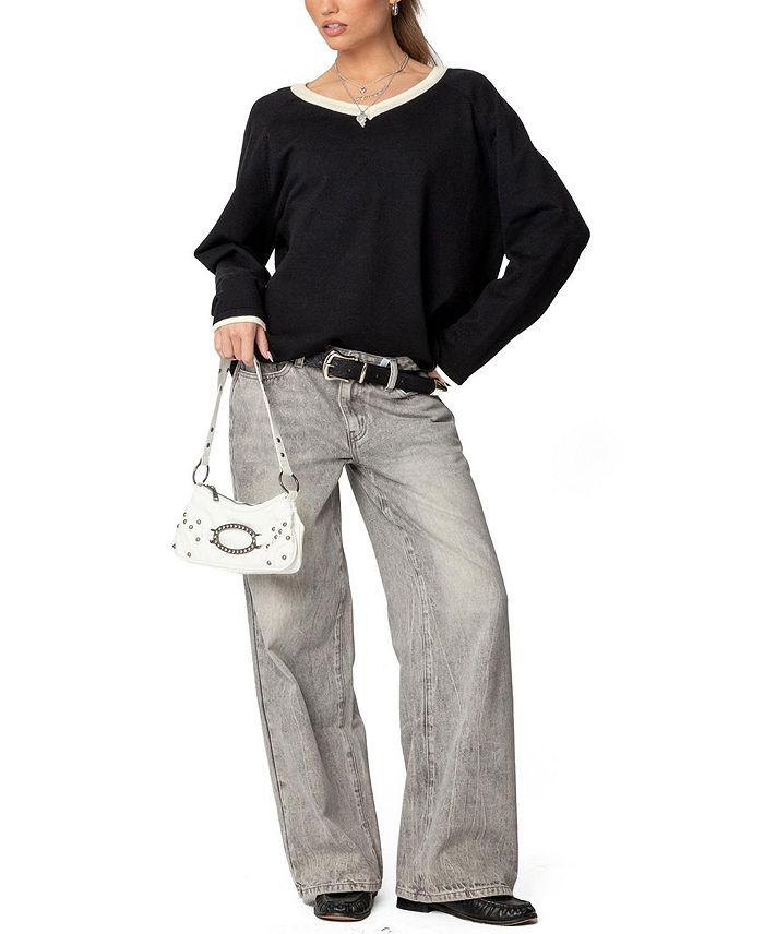 Контрастный вязаный свитер с V-образным вырезом Edikted, черный