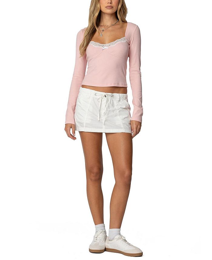 Топ с кружевной отделкой в рубчик Morgyn Edikted, розовый 5 509₽