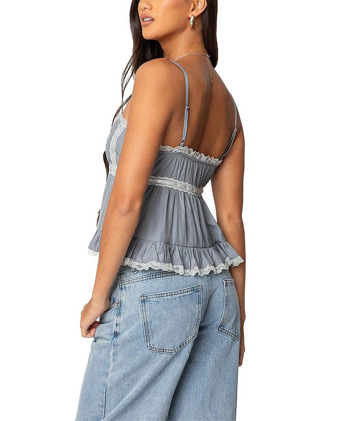 Топ Babydoll с кружевной отделкой Edikted, серый