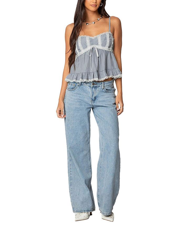Топ Babydoll с кружевной отделкой Edikted, серый 6 978₽
