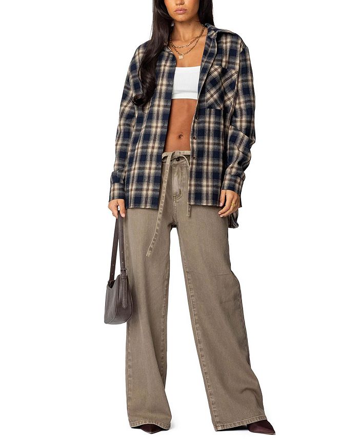 Рубашка из клетчатой фланели на пуговицах Edikted, синий