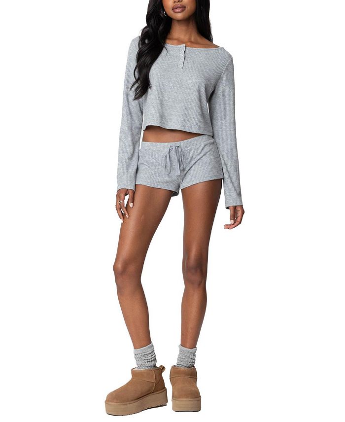 Укороченный вафельный топ Тедди Edikted, серый 6 822₽