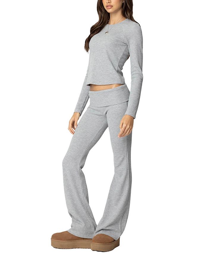 Штаны из вафельного трикотажа Sab Fold Over Edikted, серый