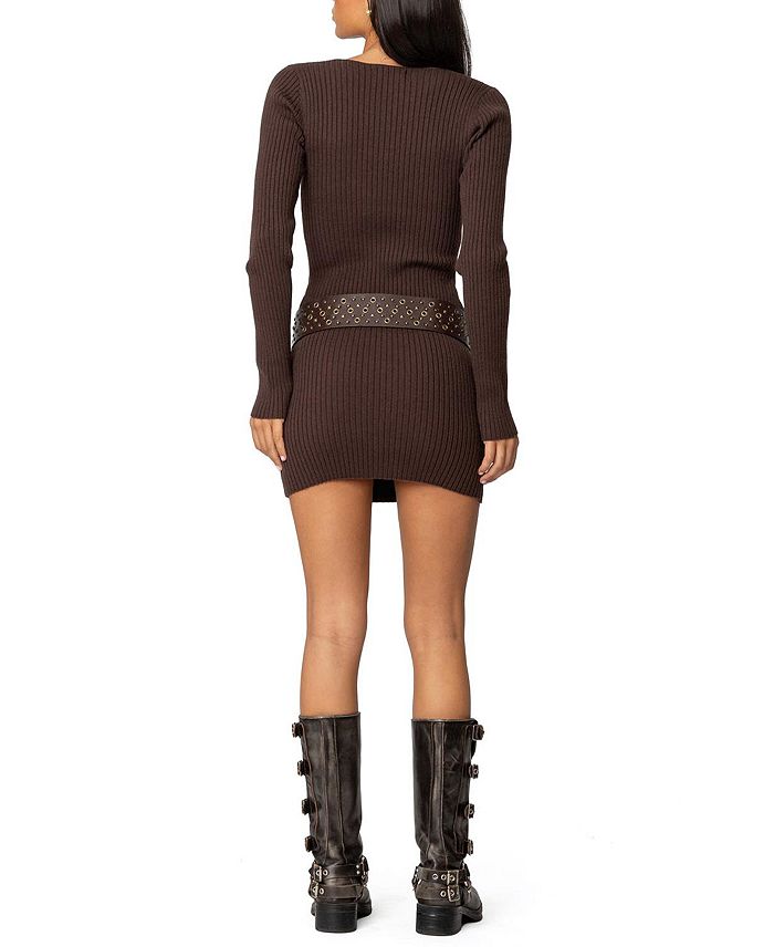 Мини-платье с V-образным вырезом в рубчик Edikted, коричневый