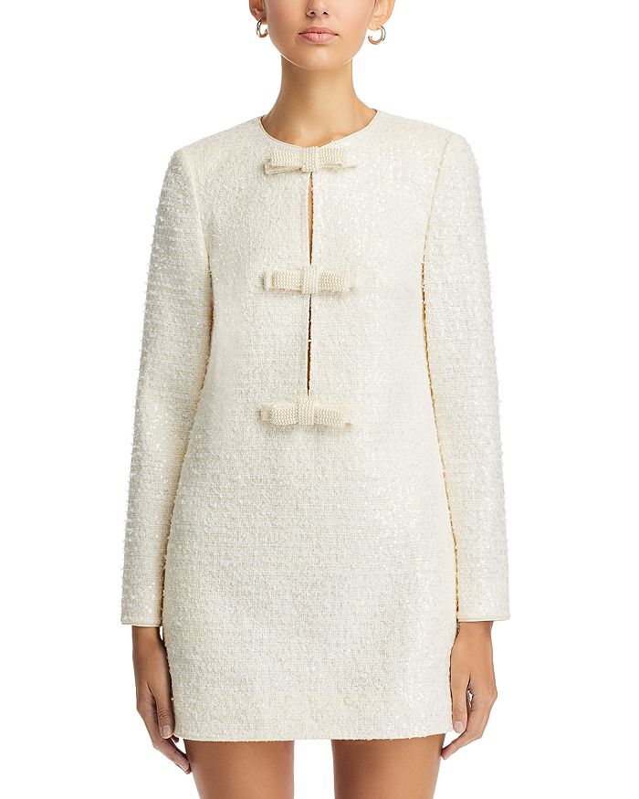 Мини-платье из букле с бантом Self-Portrait, слоновая кость/кремовый