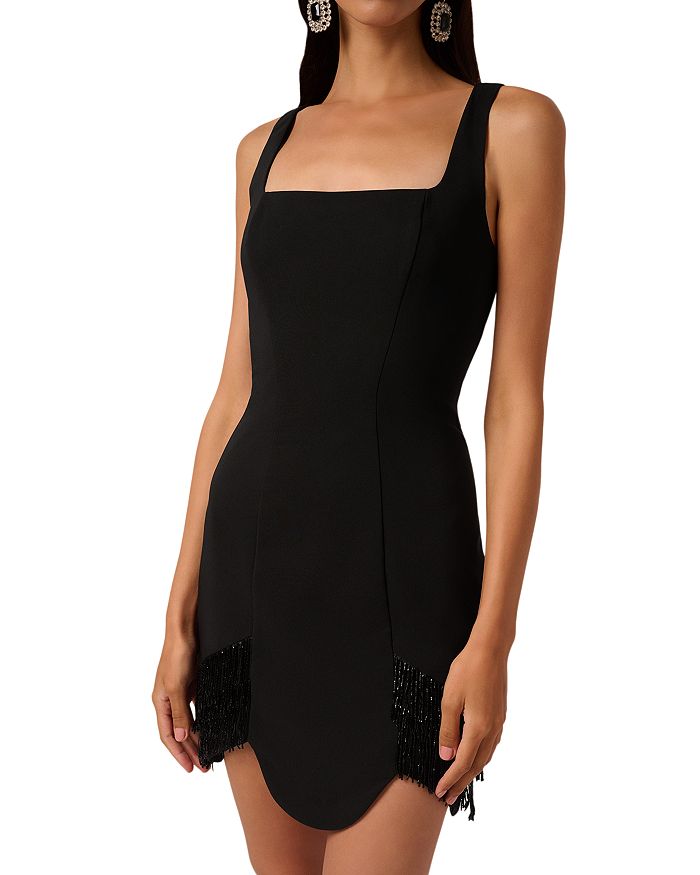 Мини-платье Addison Crepe с отделкой бисером Liv Foster, черный