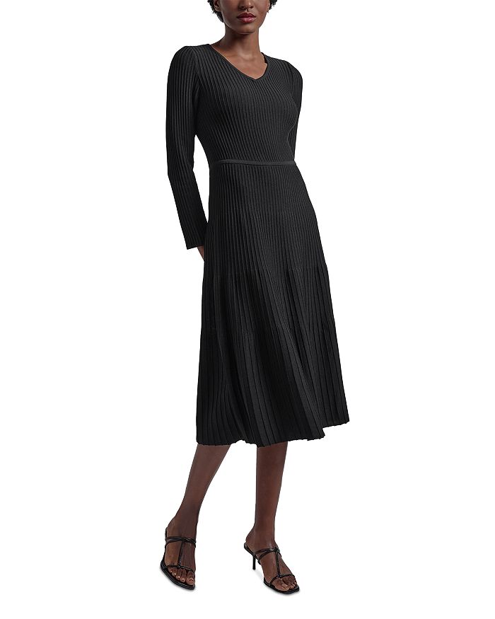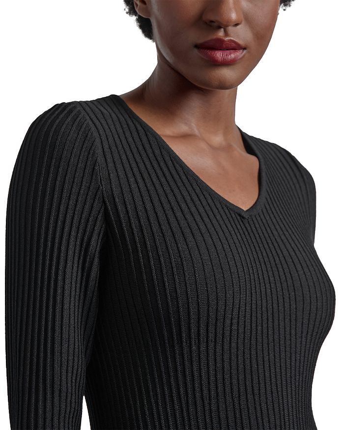 Платье миди с длинным рукавом и V-образным вырезом в рубчик Misook, черный 43 095₽