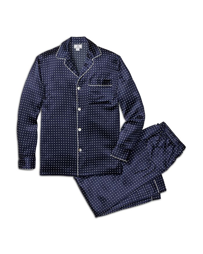 Шелковый пижамный комплект в горошек Petite Plume, синий