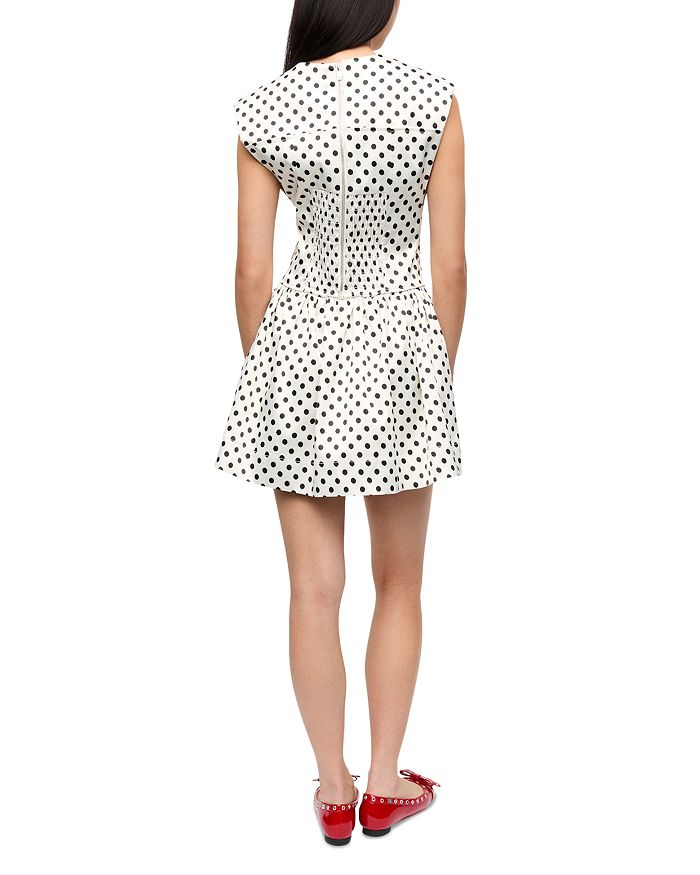 Корсетное атласное мини-платье в горошек GANNI, белый