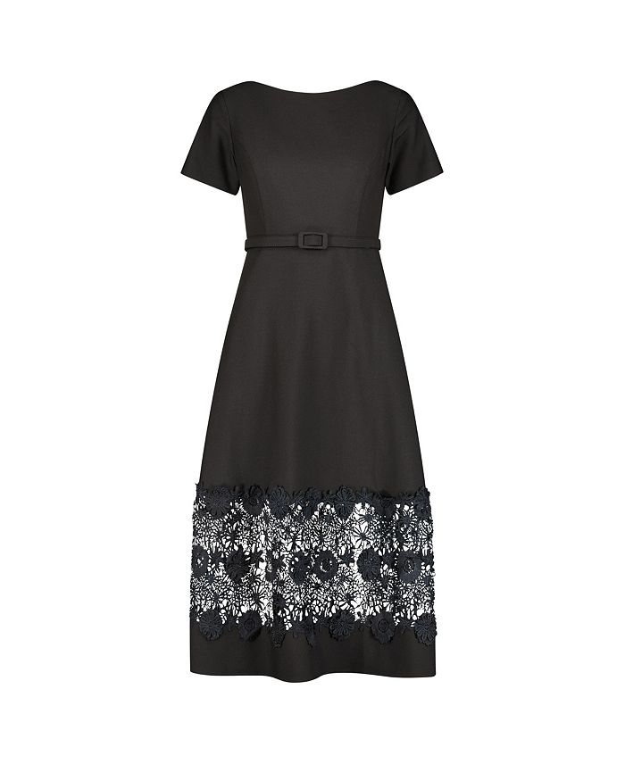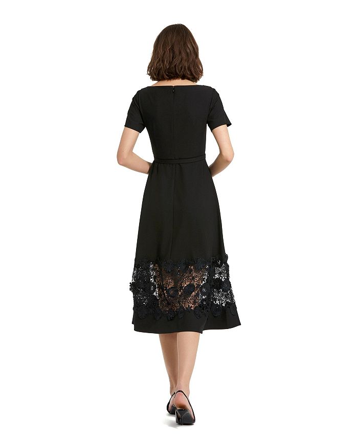 Платье миди из крепа с вырезом-лодочкой и поясом Mac Duggal, черный
