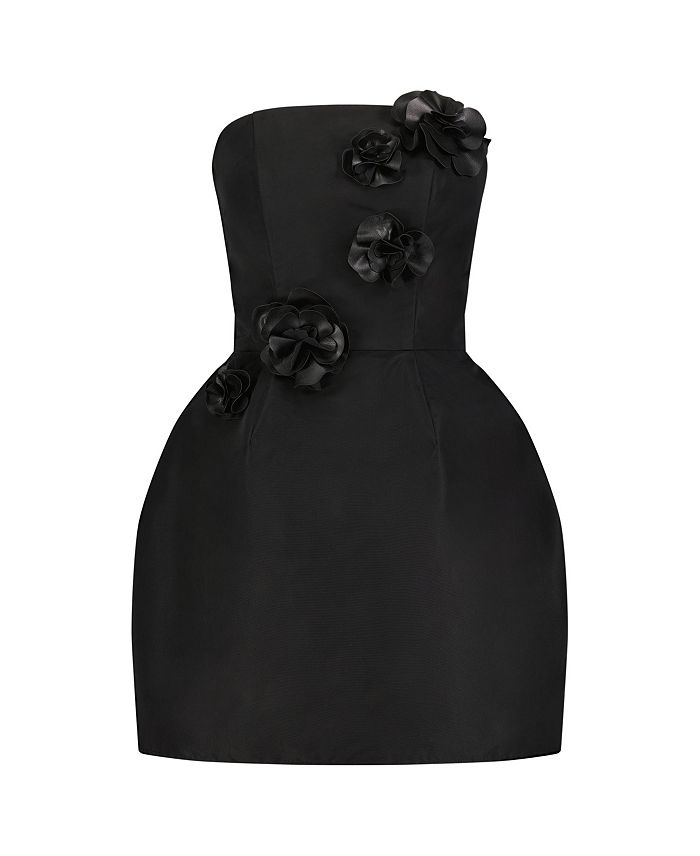 Мини-платье без бретелек Faille с 3D-цветочными деталями Mac Duggal, черный
