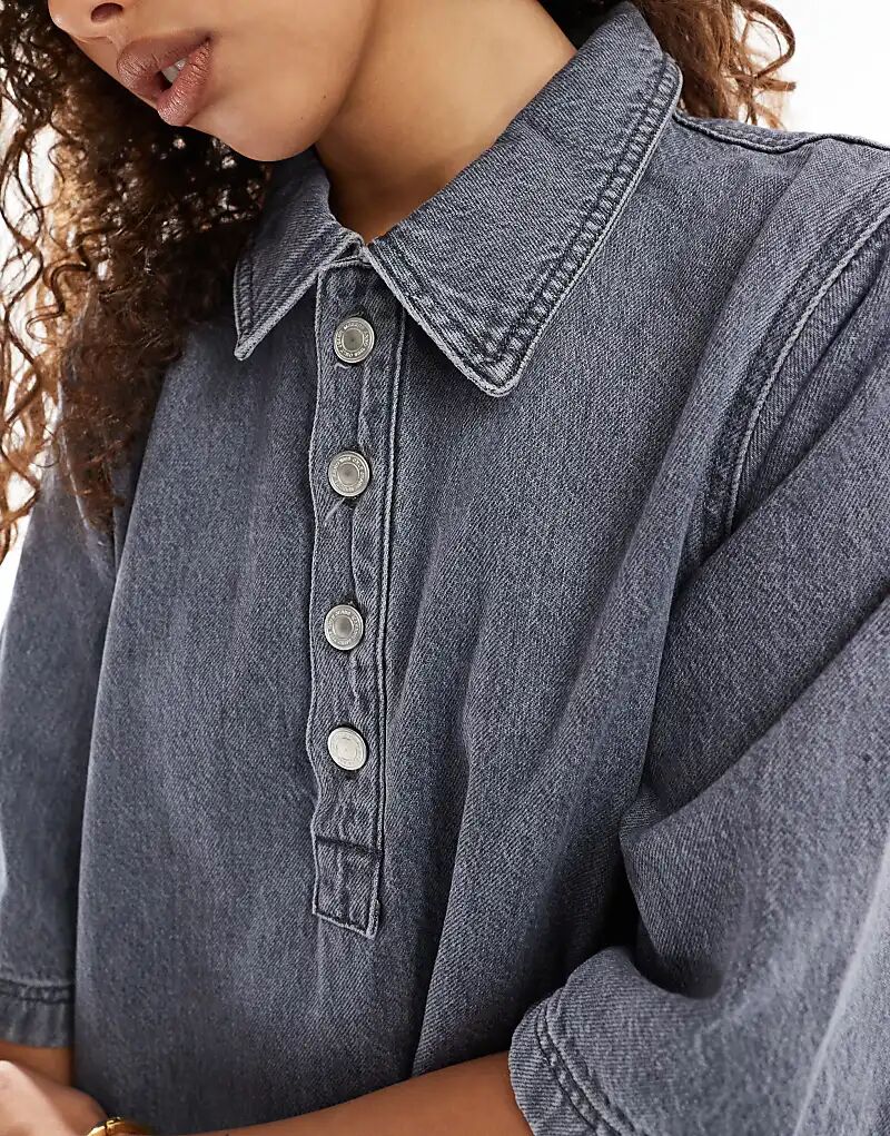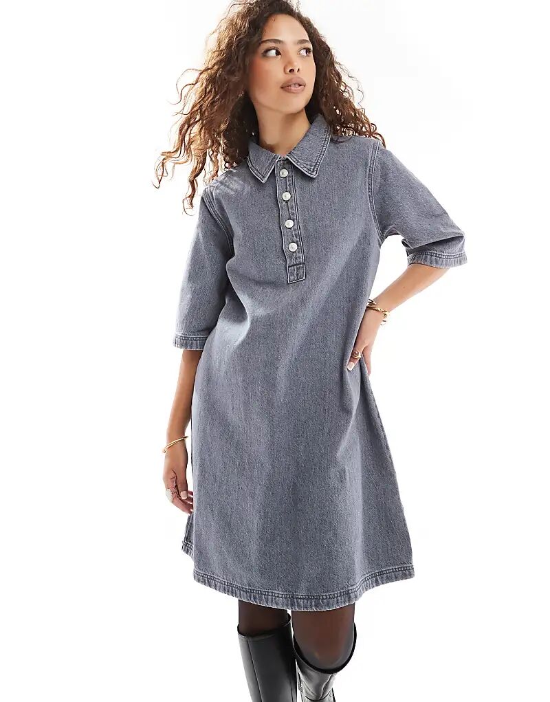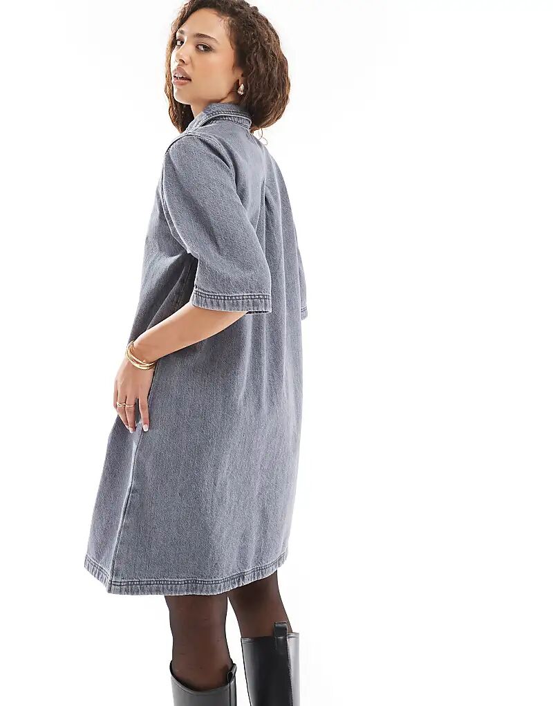 Джинсовое платье с коротким рукавом серого цвета ONLY