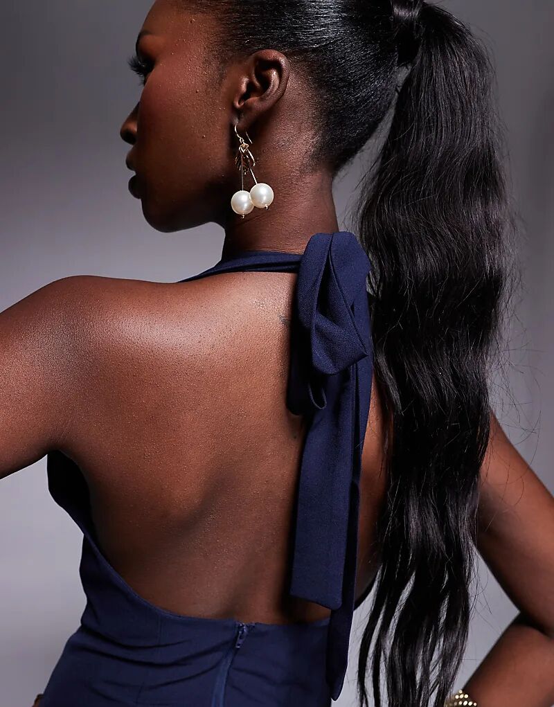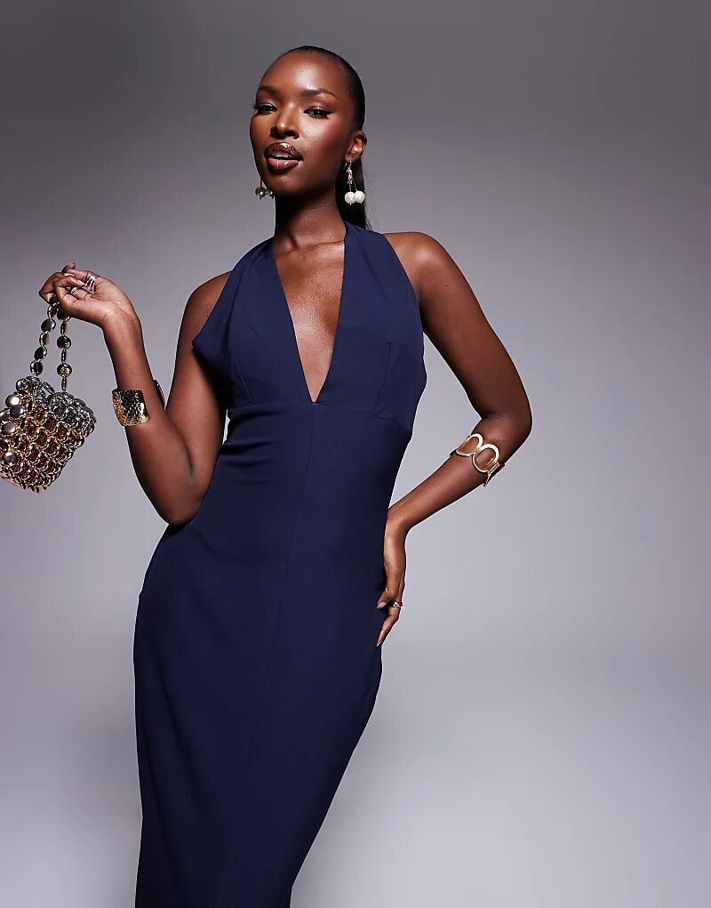 Платье макси с глубоким вырезом темно-синего цвета Vesper