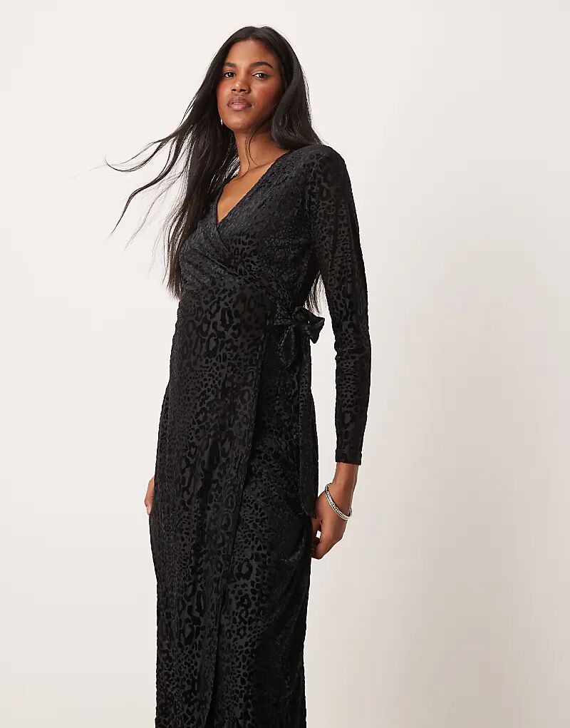 Платье midaxi из бархата Burnout с запахом черного цвета Never Fully Dressed