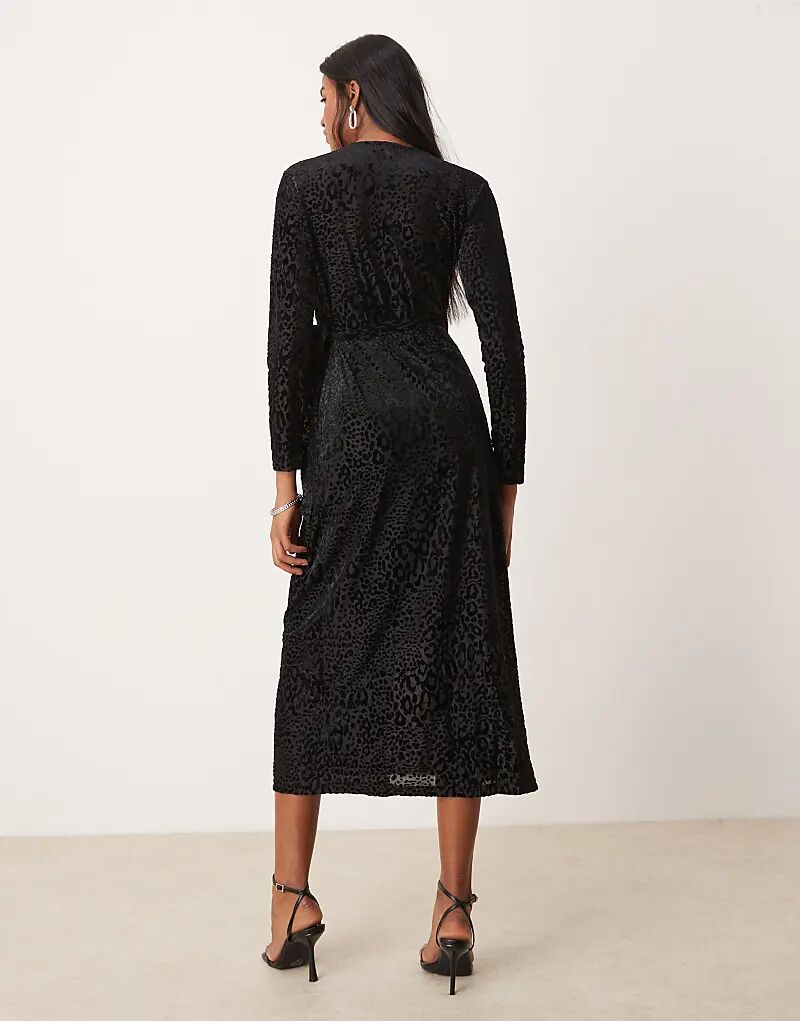 Платье midaxi из бархата Burnout с запахом черного цвета Never Fully Dressed 11 095₽