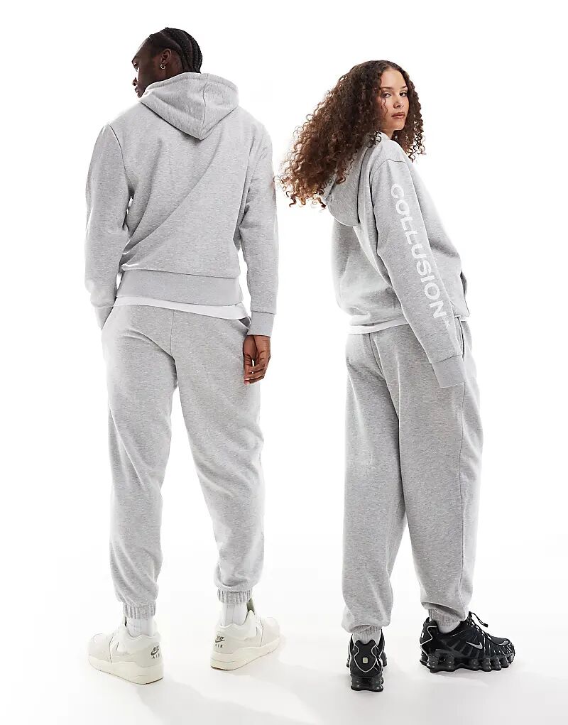COLLUSION Унисекс-джоггеры с логотипом в цвете Heather Grey (часть комплекта)