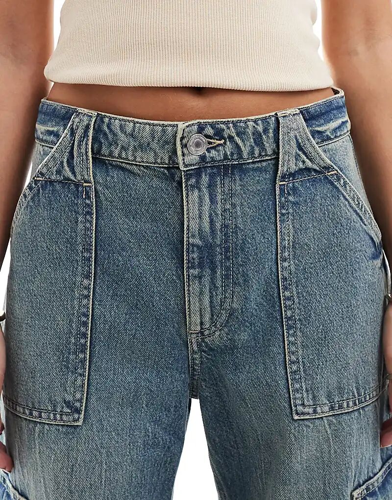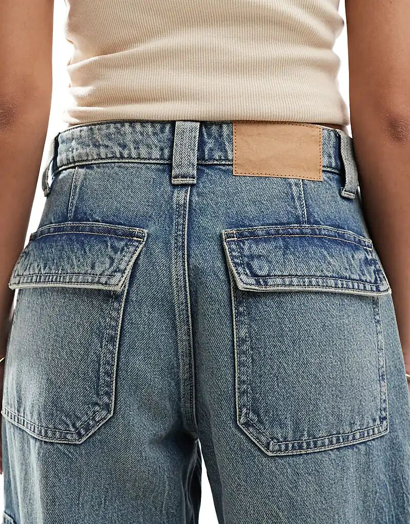 Свободные джинсы-карго средне-синего цвета Cotton:On