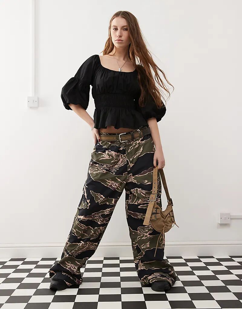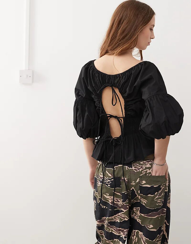 COLLUSION блузка с рукавами-фонариками черного цвета