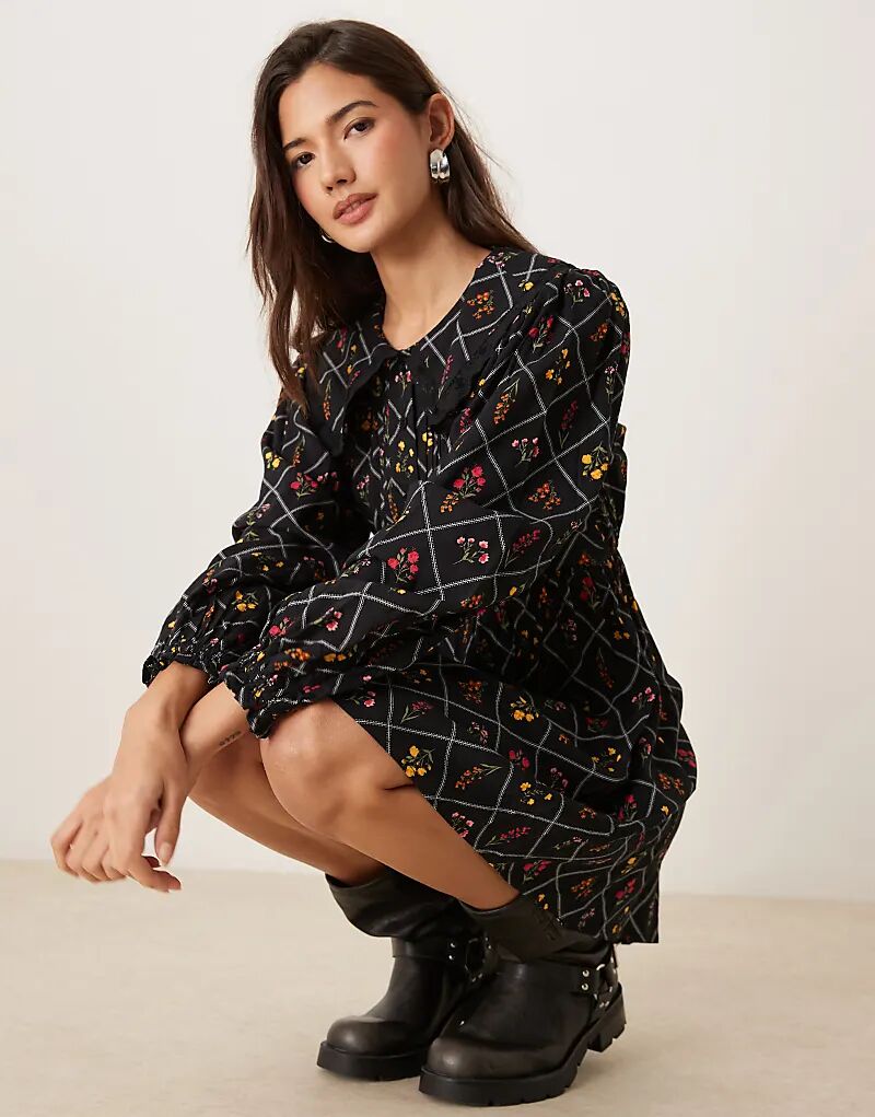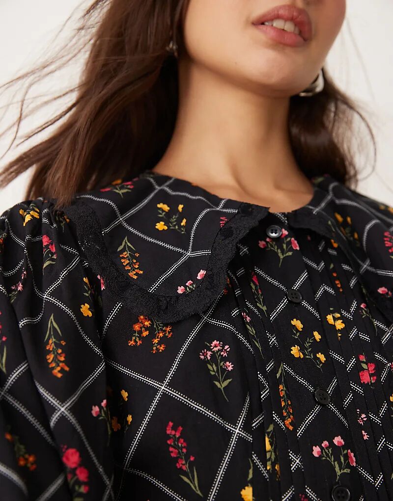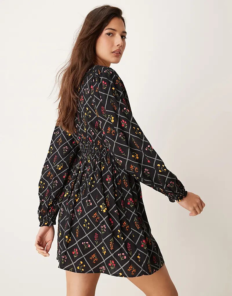Мини-платье с длинными рукавами и кружевом в принт Miss Selfridge