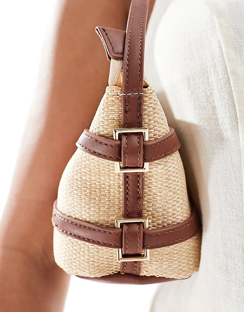 Соломенная сумка через плечо с коричневыми ремешками ASOS DESIGN