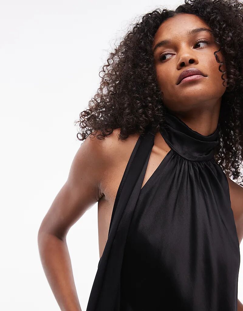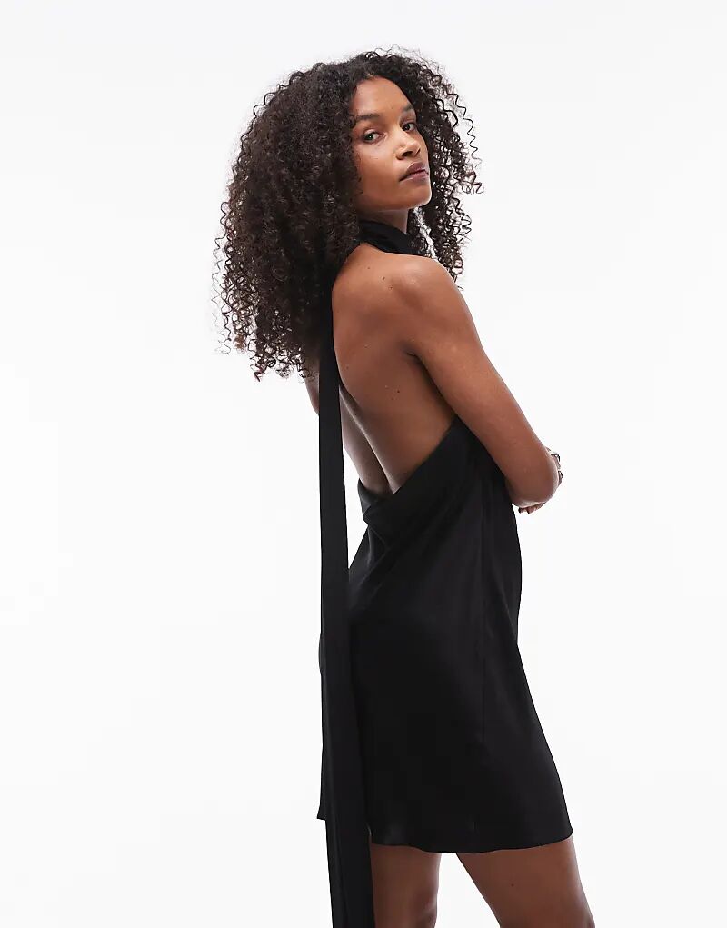 Мини-платье с шейным платком черного цвета Topshop