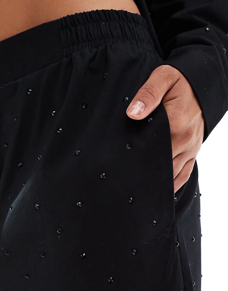 Черные брюки-комбинезон ASOS DESIGN с отделкой из драгоценных камней