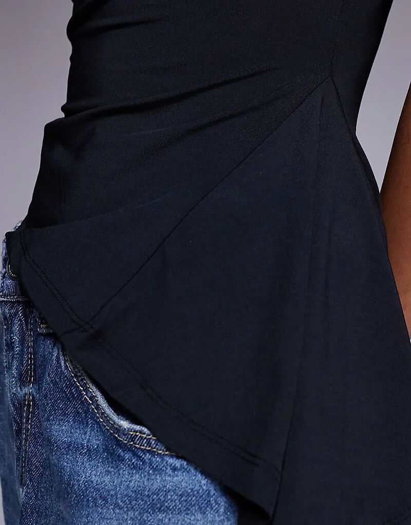 Майка с косым вырезом и оборкой-годе черного цвета ASOS DESIGN