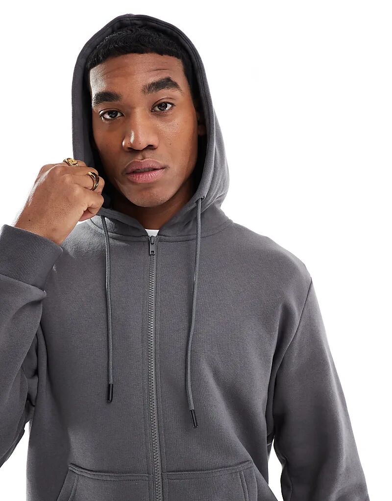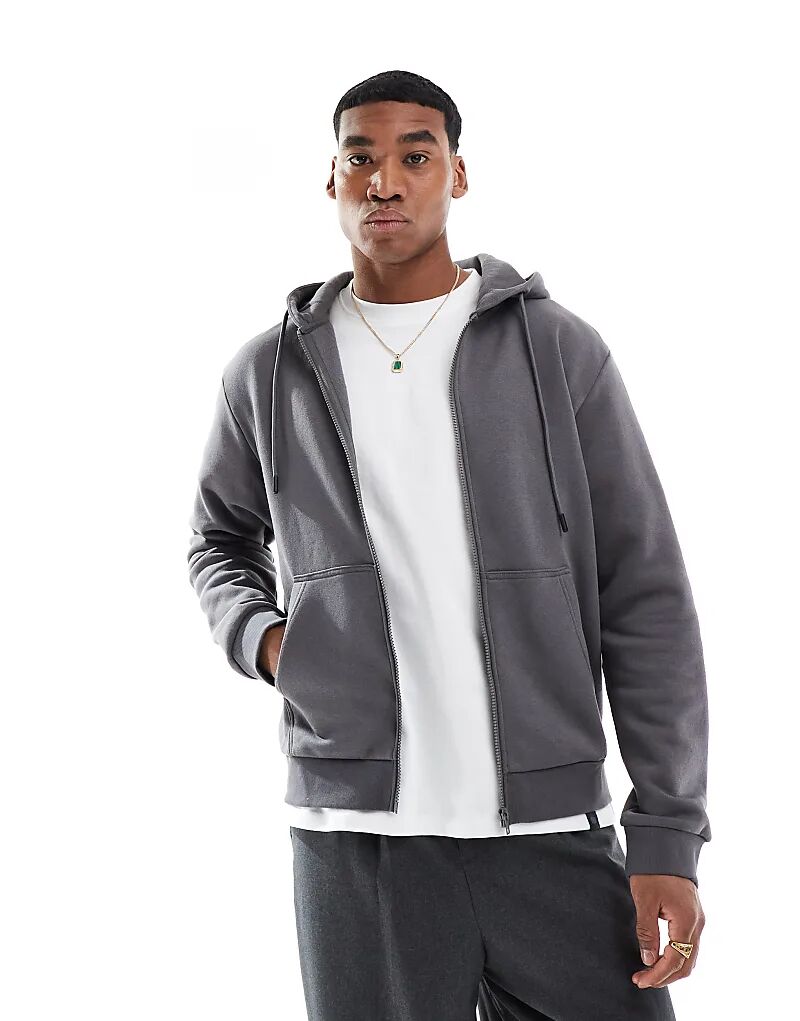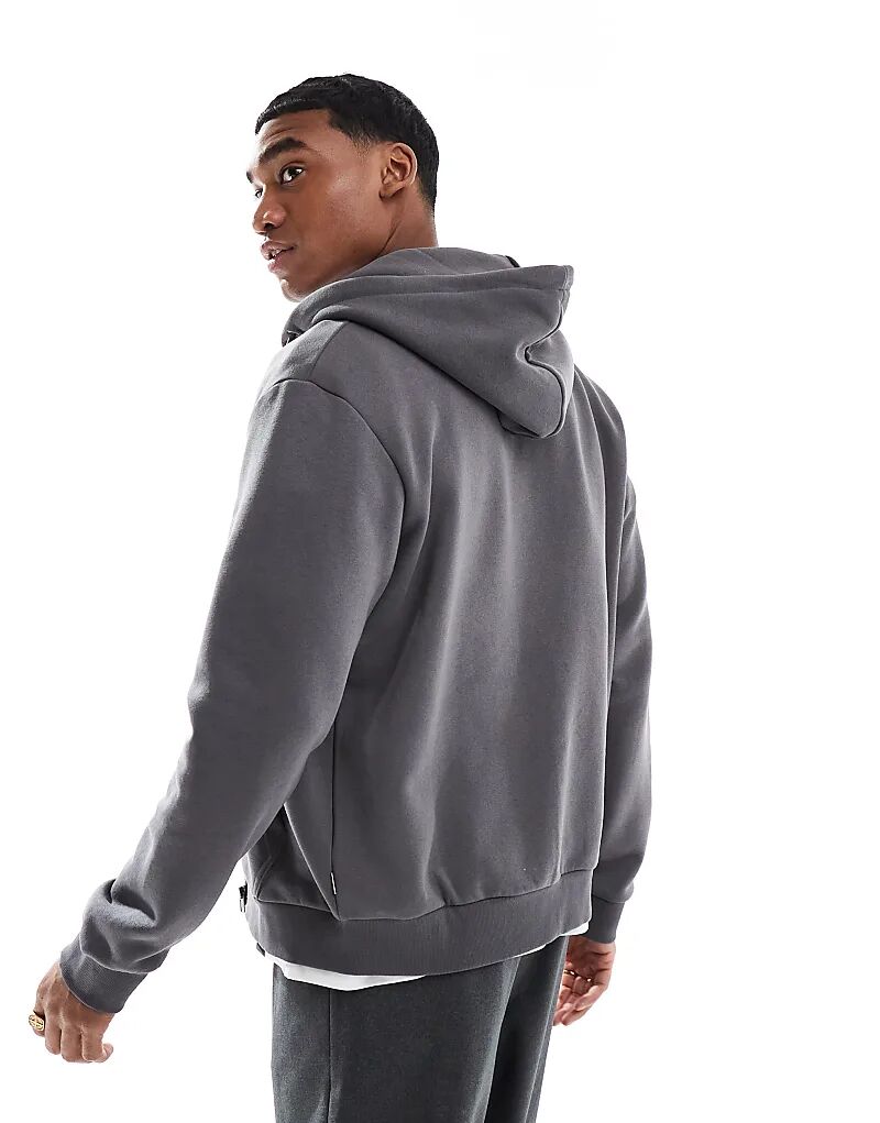 Толстовка oversize с капюшоном на молнии серого цвета Jack & Jones