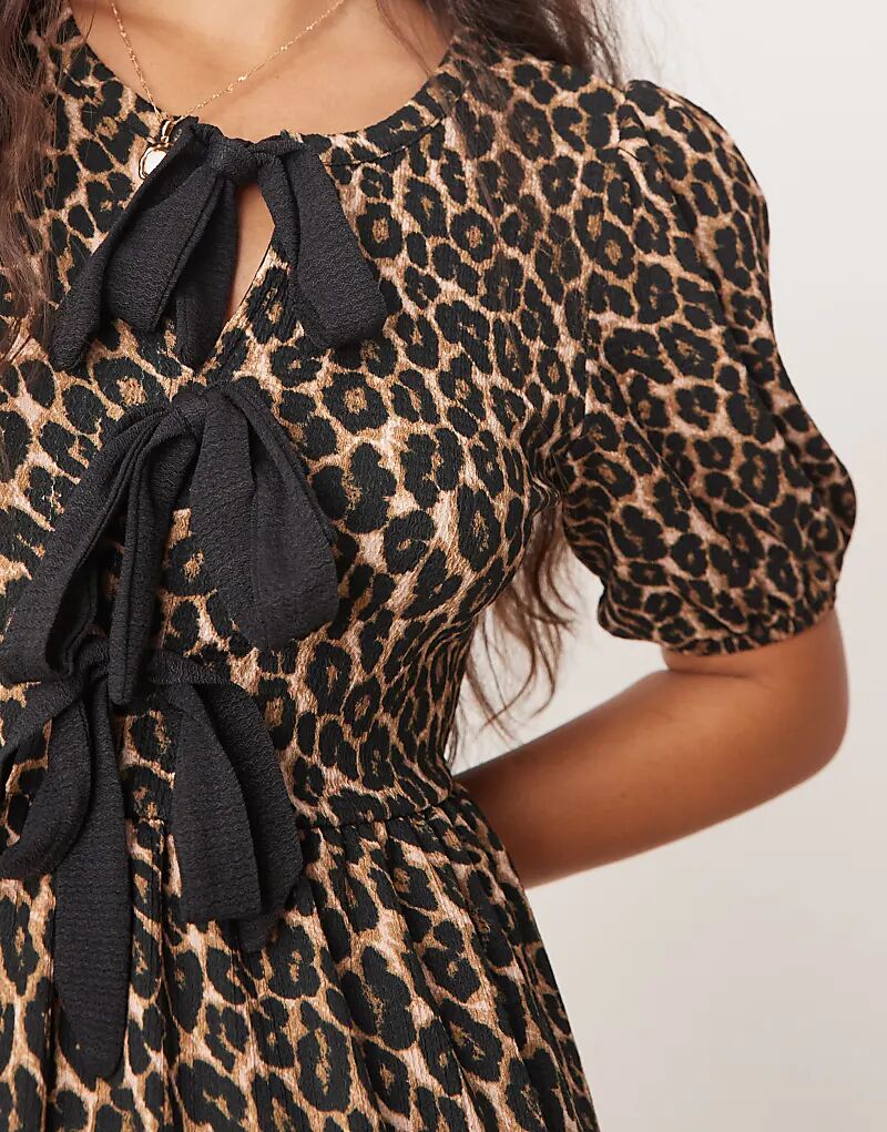 Платье миди с завязками спереди в леопардовый принт New Look