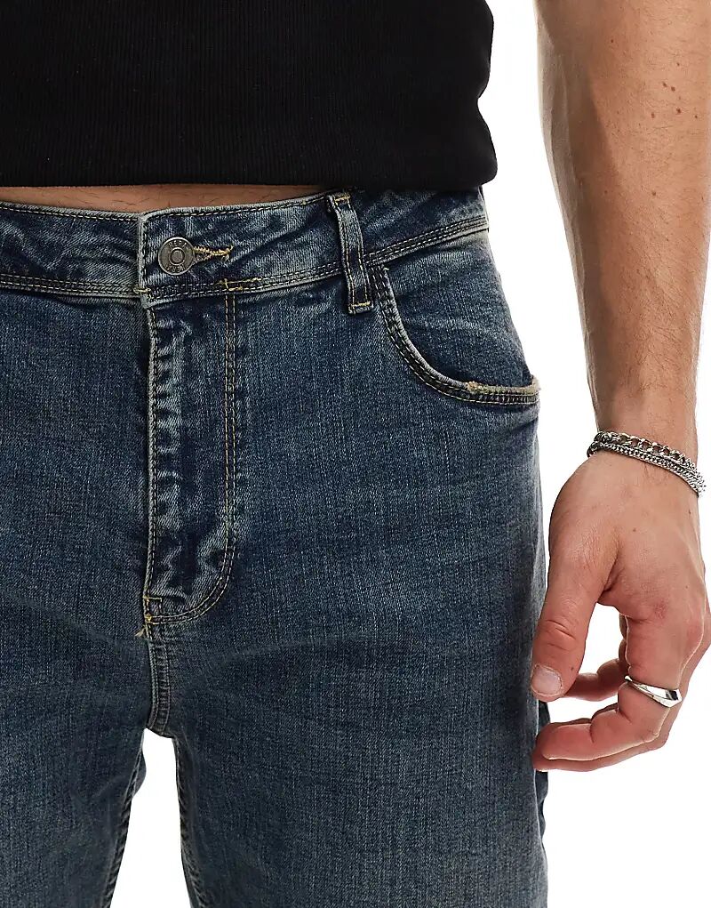 Неэластичный деним: средне-голубой цвет.