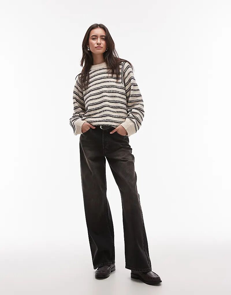 Джемпер с полосками, связанный спереди, моно Topshop
