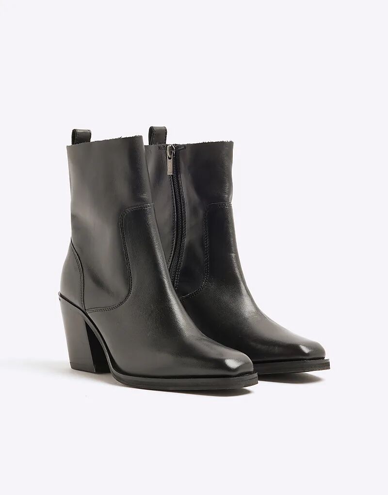 Кожаные ковбойские сапоги черного цвета River Island 10 567₽