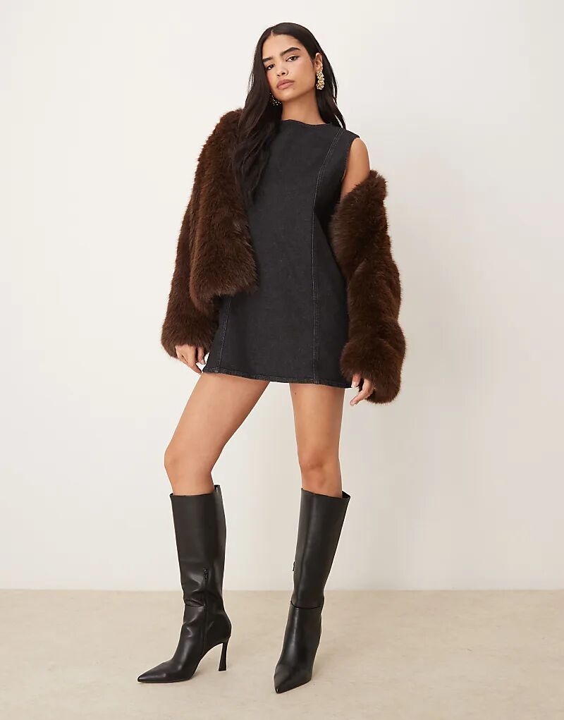Джинсовое платье-трапеция со швами черного цвета ASOS DESIGN