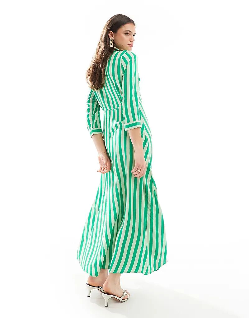 Платье-рубашка макси в зеленую полоску - MGREEN YAS